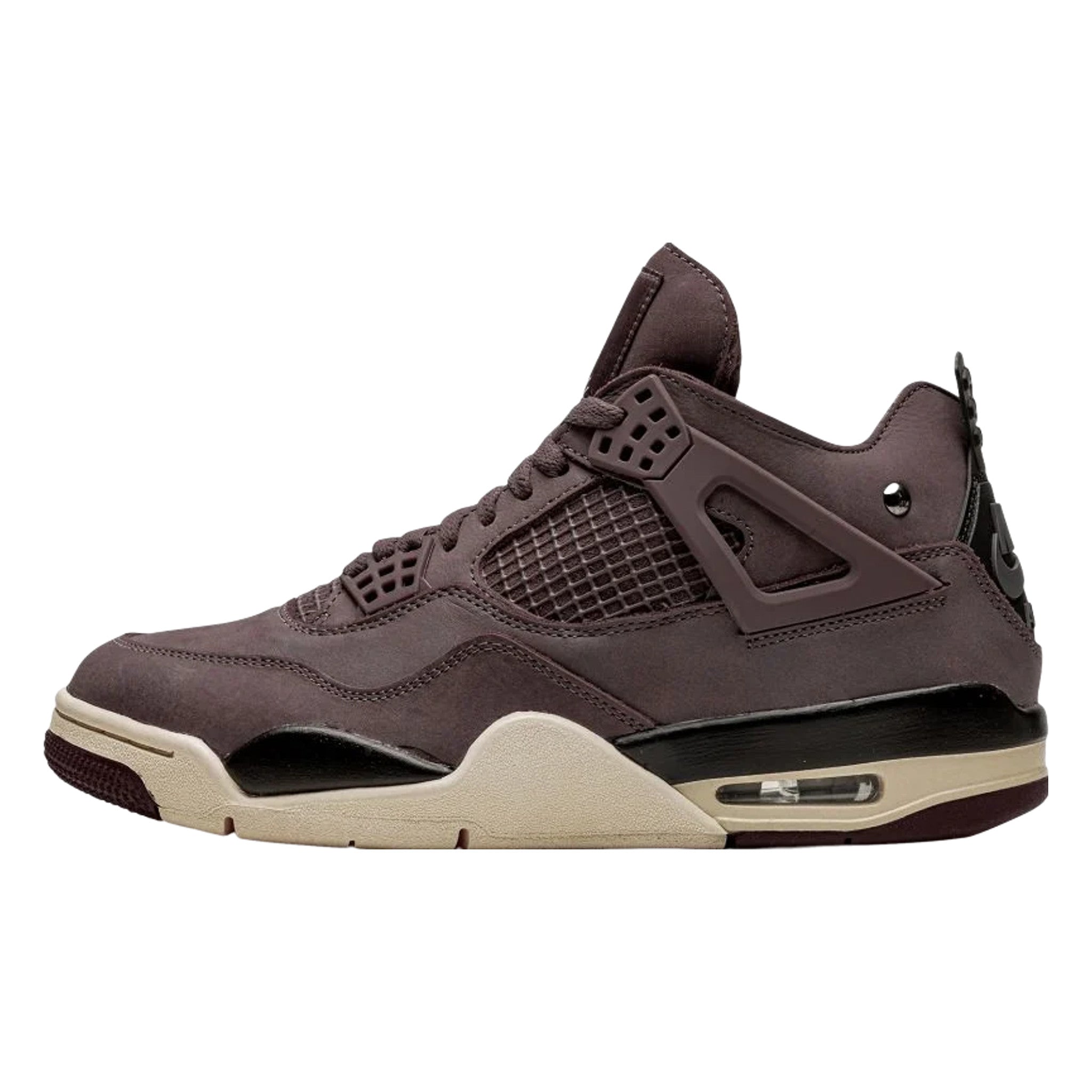 The A Ma Maniére x  Jrdn-4 “Violet Ore” is a collaboration between the upscale clothing and sneaker boutique and Jordn Brand on Michael Jordn’s fourth signature shoe. Over the last few years, A Ma Maniére has been one of the most influential and highly regarded sneaker collaborators in the footwear industry. Headed up by James Whitner, the high end boutique brings a luxury approach to design with its projects with Jordn. On the “Violet Ore,” A Ma Maniére updates the Jrdn 4 with a pale purple nubuck upper with tonal netting on the tongue and mid-panel. The lace “nets” and “wings” are also rendered in the same Violet Ore hue as the base.  branding appears on the black heel counter and A Ma Maniére and Jrdn Brand logos are found on the tongue. Underfoot, a cream midsole completes the look.