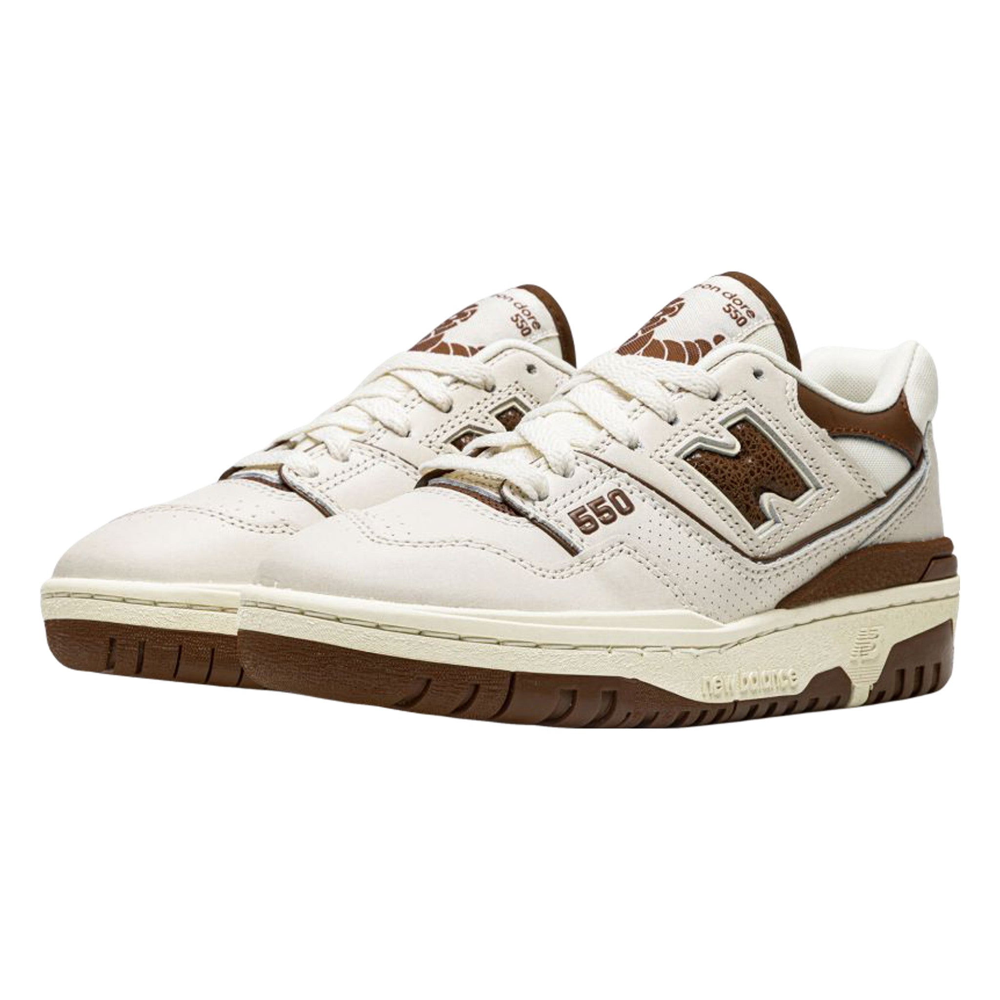 Elevate your everyday with the 2022 New Balance 550 Aime Leon Dore Brown. Crisp white leather and rich brown suede create a timeless contrast. Subtle branding hints at the coveted collaboration, while ABZORB comfort and grippy rubber complete the package. From streetwear to elevated casual, these limited-edition sneakers turn heads.