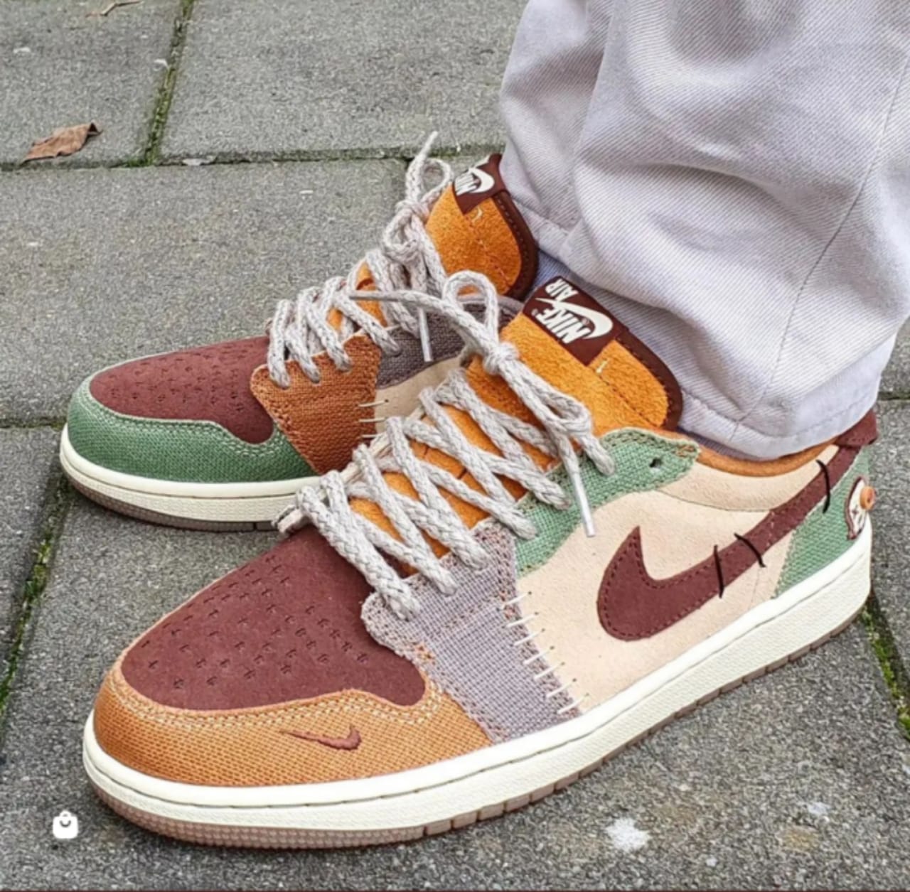 Zion Williamson and the Jordan Brand proved they are a match made in heaven after releasing this cool iteration. The New Orleans-inspired design puts a distinctive twist on the original Air Jordan 1 Low silhouette, offering a patchwork aesthetic with splashes of green, brown, orange, and beige across the upper. Released in 2022 as part of the extensive Voodoo pack, you can guarantee the burlap-style overlays with raw edging, and a mismatched colour palette will separate the kicks from other sneakers in your rotation. If you look a little closer, you'll notice an inverted mini brown Nike Swoosh on the toecap and an embroidered voodoo doll image on the lateral heel counter. The Nike branding on the tongue and the wings logo on the heel tab are upside down, creating a unique sneaker design that's bound to turn many sneaker fans' heads.