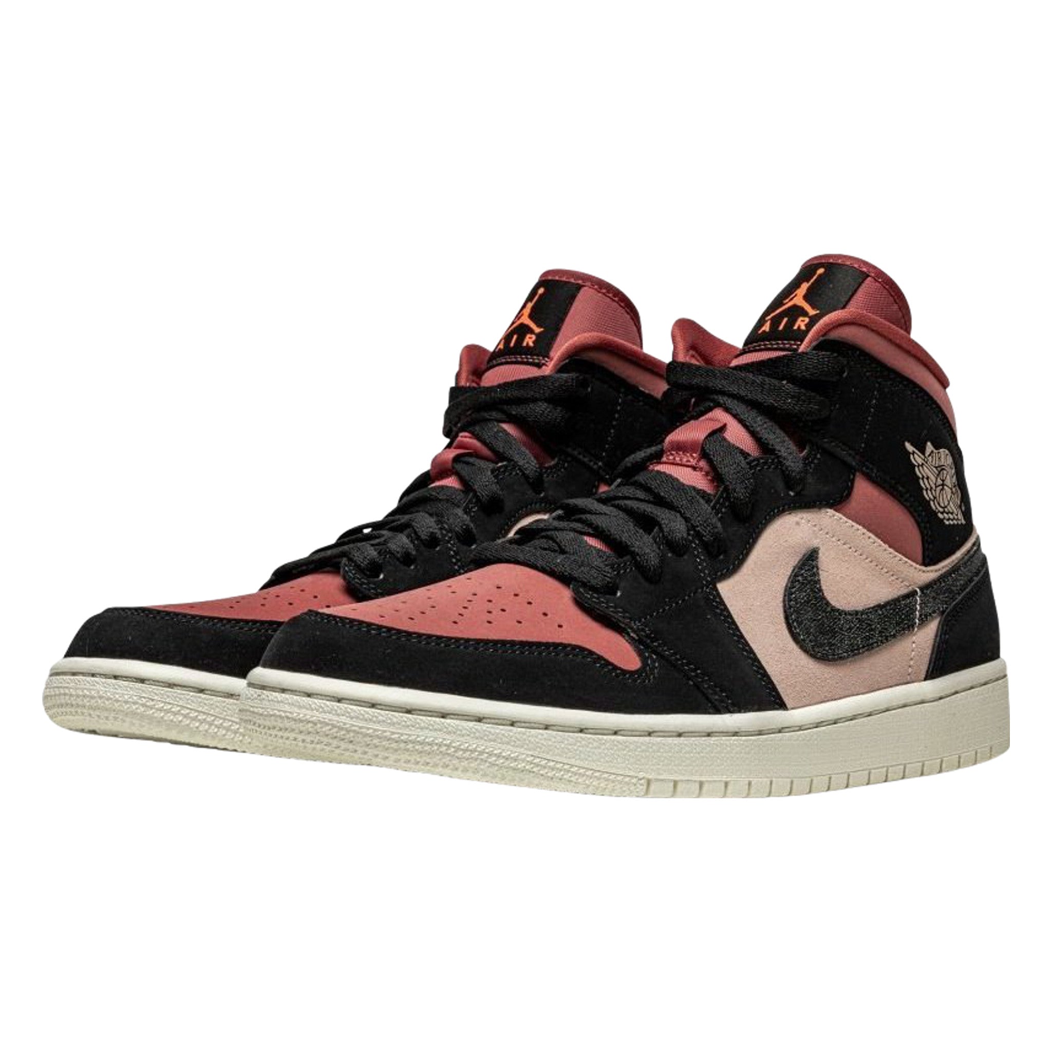 The Women’s Ar Jrdn 1 Mid “Canyon Rust” is the women’s sizing of Michael Jrdn’s first signature shoe in a street-ready colorway. The Jrdn 1 Mid has become a sought after shoe in the Jrdn line for its easy-to-wear style and considerable comfort. On the “Canyon Rust,” black synthetic nubuck panels allow for the Particle Beige suede mid-panel and dark pink to garner attention. The black speckled adds a unique look to the design. Jrdn Brand places a “Wngs” logo on the collar and adds an orange tinted insignia to the black nylon patch stitched onto the tongue. A Sail rubber sole completes the look.