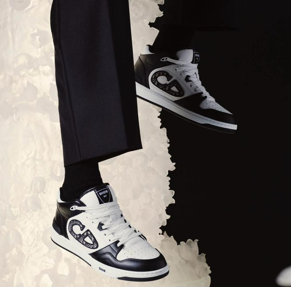 Black and white smooth calfskin CD signature in beige and black Dior Oblique jacquard on the side...