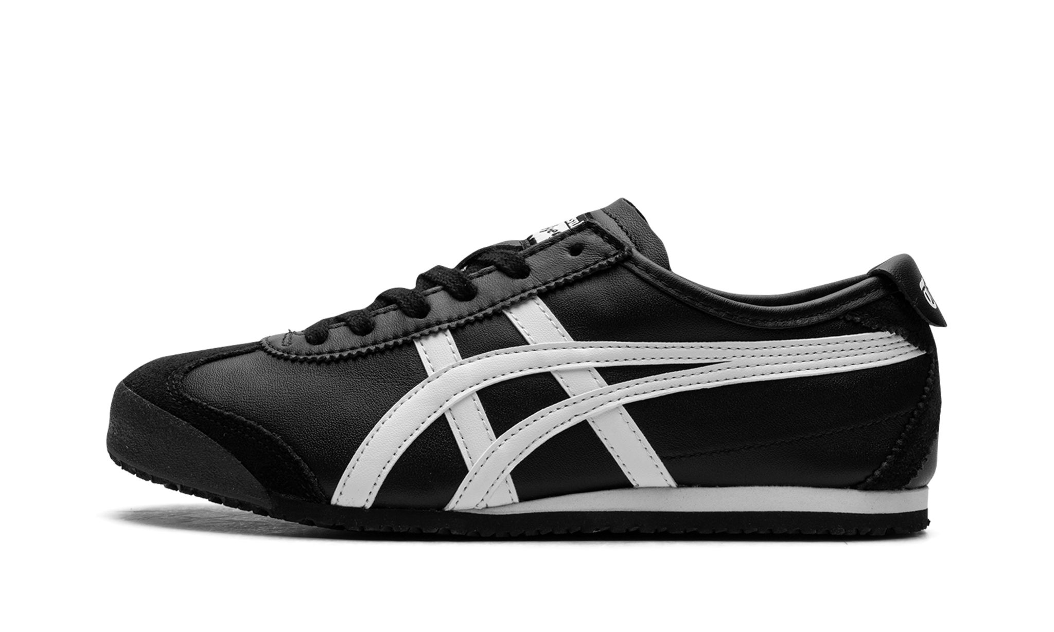 The Onitsuka Tger Mexico ‘66 “Black/White” is a versatile, two-tone colorway of the retro sneaker. The Onitsuka Tger Mexico 66 debuted as a performance running shoe in 1966 during the pretrials for the Mexico City summer olympics in 1968, and through the years it has become a popular casual sneaker. The modern iteration of the model is largely similar to the original edition, but is made with contemporary materials and colors. Here, the “Black/White” features a black leather construction with white leather tger stripes on the sides. Classic “Onitsuka Tger” branding is located on the tongue tag. A vintage-inspired, thin white and tan foam midsole and rubber outsole complete the sleek design.