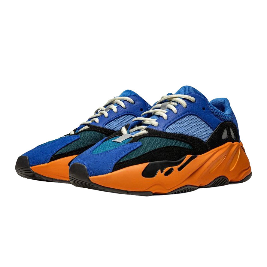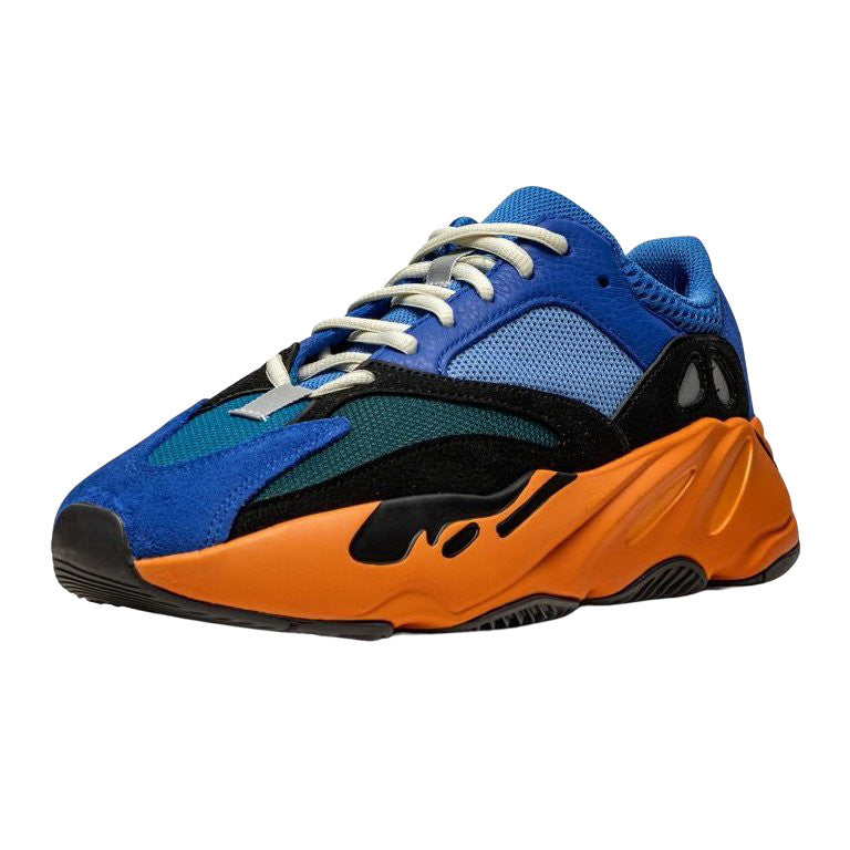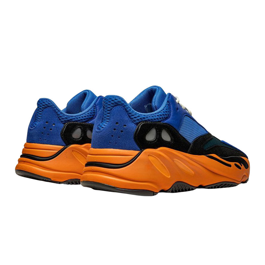 The Yzy Bst 700 “Bright Blue” is an April 2021 release of Kanye West’s popular “dad shoe” that makes use of a vibrant color palette. Succeeding the warm “Sun” Yzy 700 colorway, the “Bright Blue” is yet another attention grabbing look for the model that helped popularize the chunky shoe movement. Bright Blue mesh detailing appears on the mid-panel and collar. The same electric shade of blue forms the look of the leather overlays on the collar and eyelets, and on the suede paneling on the heel and the toe. Black felt detailing is located on the forefoot and above the chunky sculpted orange midsole. Responsive Bst cushioning is encased within the midsole.