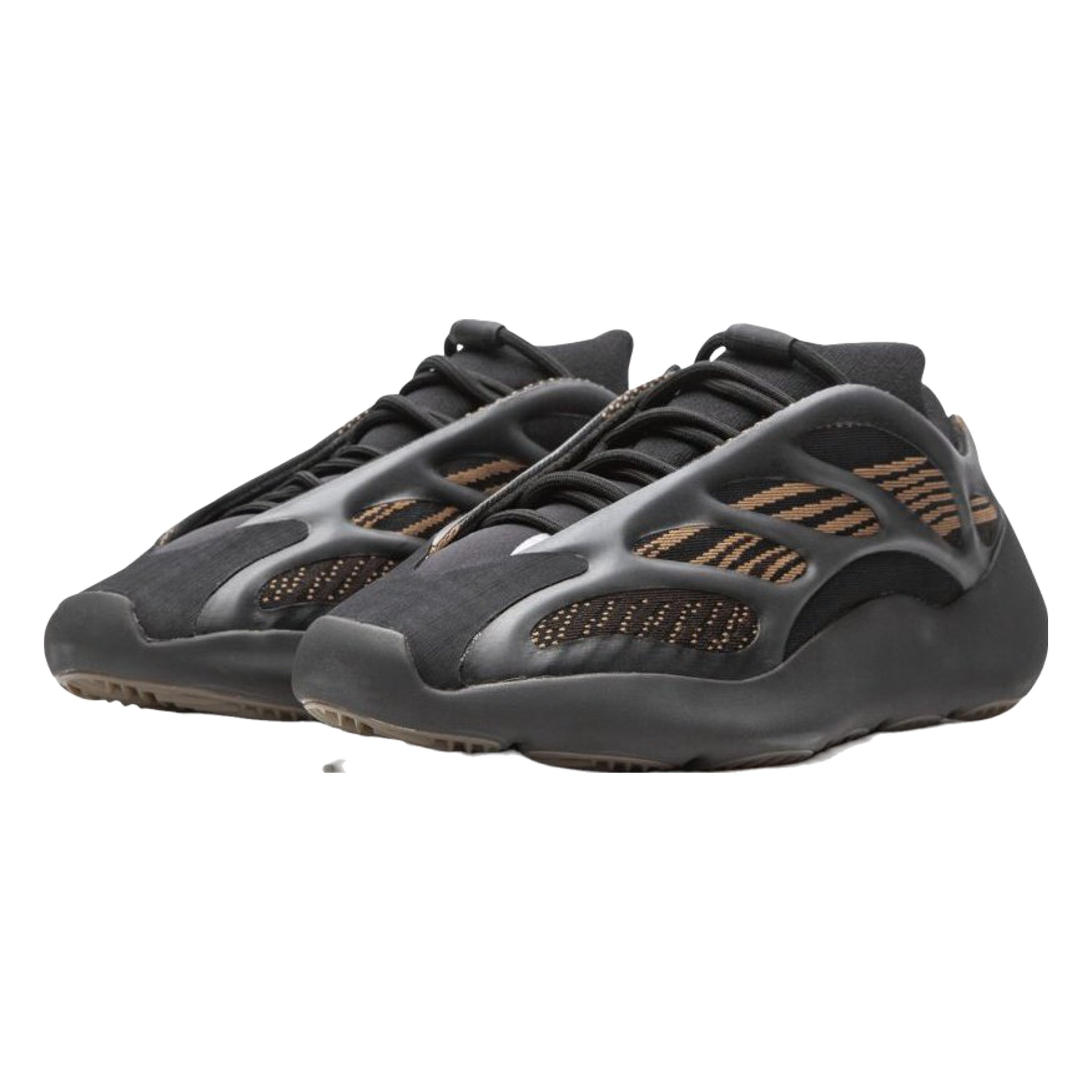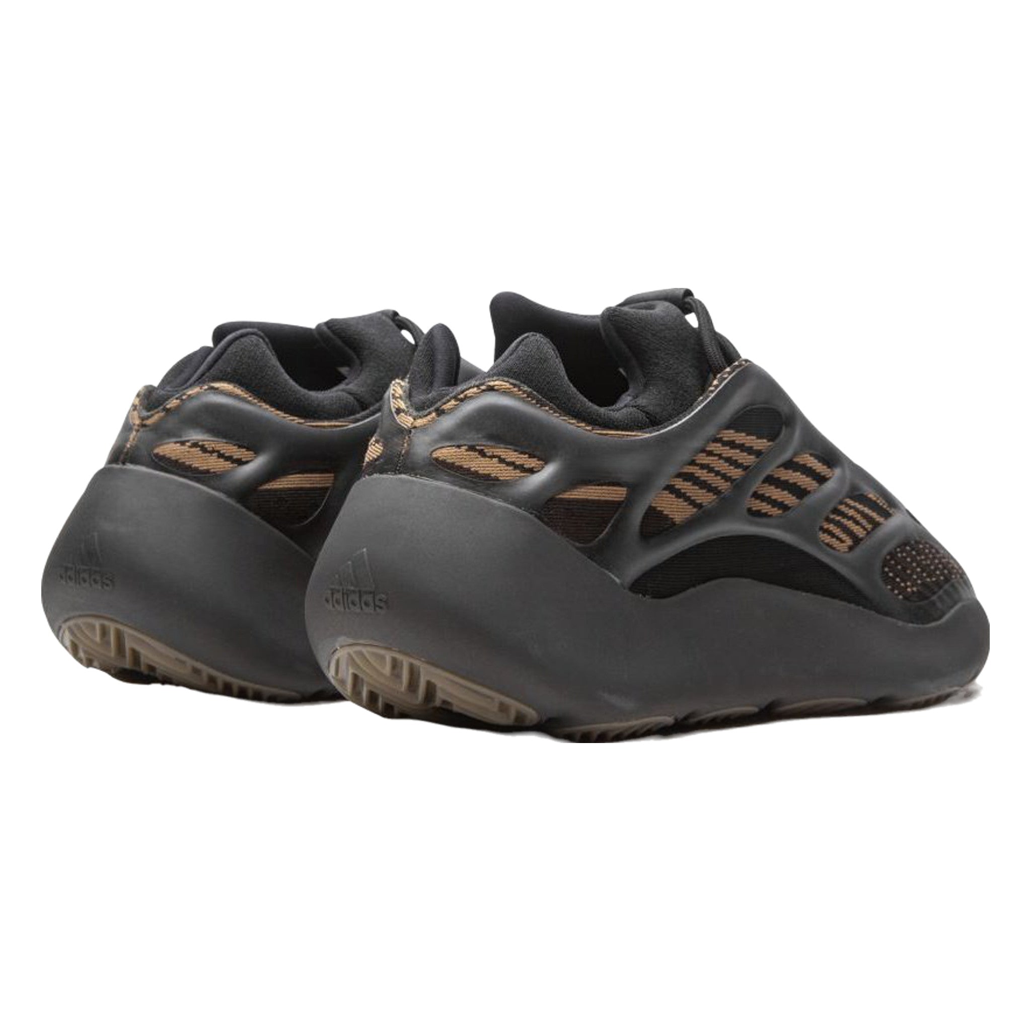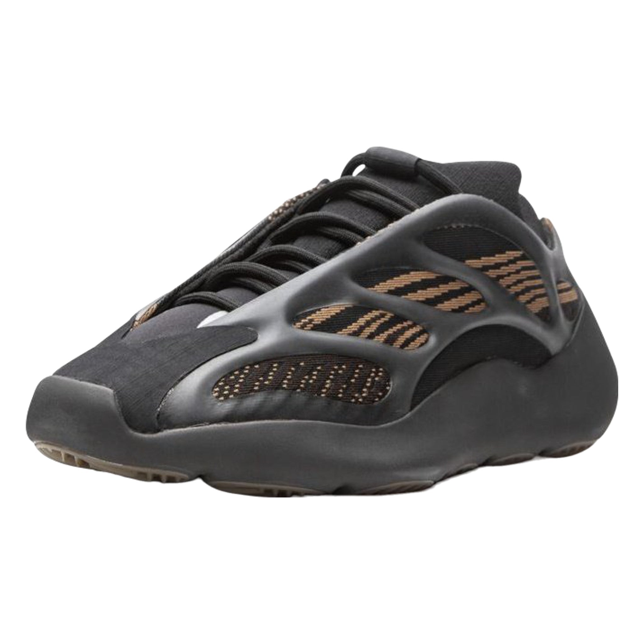 The Yzy 700 V3 “Clay Brown” is a sleek and earthy colorway of the third iteration of the popular model by adidas and Kanye West. A Holiday 2020 release, the Yzy 700 V3 “Clay Brown” is dressed in a predominantly black and brown design that fits seamlessly into anyone's rotation. The upper features a black monofilament engineered mesh material with contrasting Clay Brown woven stripes on either side. A black TPU cage is overlaid across the upper for a structure and support. The “Clay Brown” sports a black neoprene bootie-style liner for a foot-hugging feel.  places EVA foam cushioning technology inside of the washed-black-colored midsole for all-day comfort. A gum rubber outsole finishes off the look.
