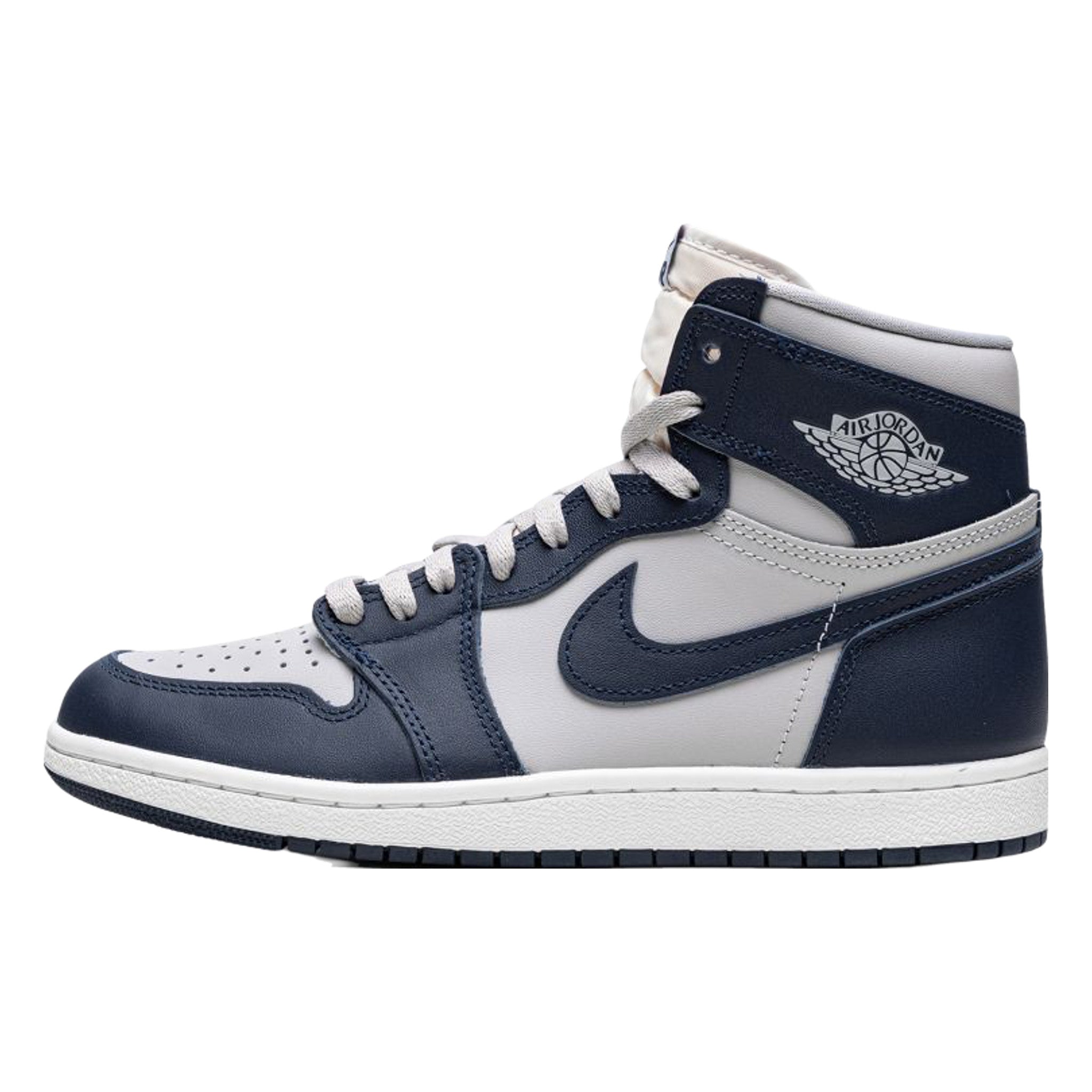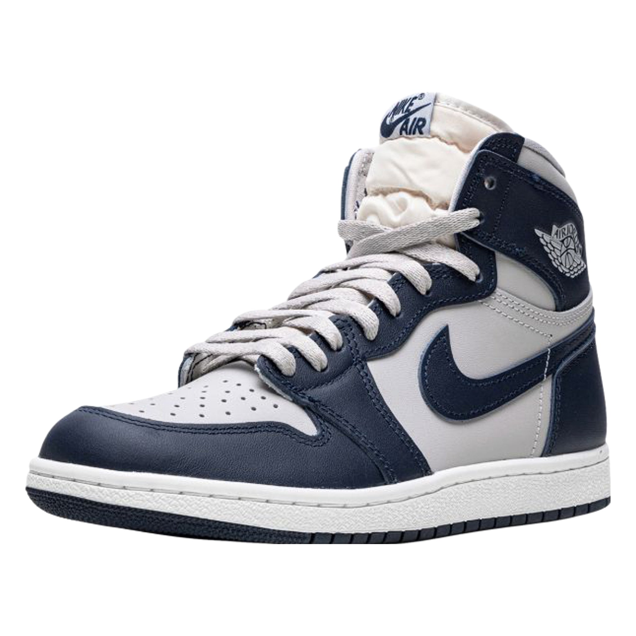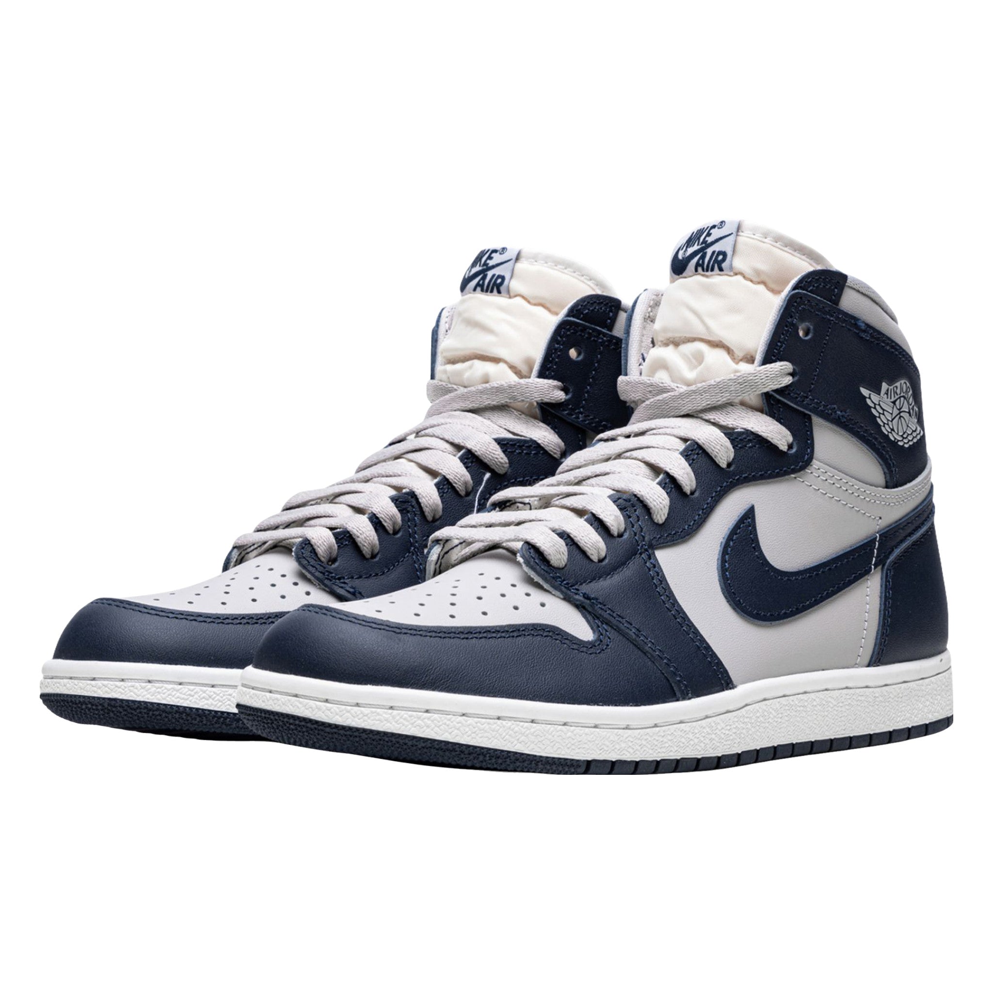 The Ar Jrdn 1 High ‘85 “Georgetown” is a colorway of Michael Jrdn's first signature shoe that shows appreciation to the Georgetown Hoyas, the college basketball team Jrdn famously defeated to earn his first NCAA Championship in 1982. The Jrdn 1 High ‘85 “Georgetown” is a near one-to-one remake of the original Ar Jrdn 1 Hgh from 1985, as it features an accurate-to-original collar height and shape and panel placement, and upgraded materials. Specifically, the “Georgetown” colorway appears in the same color block as the Hoyas’ team uniforms, with Tech Grey leather on the perforated toe, mid-panel, and collar, and contrasting College Navy leather on the overlays and branding. A Summit White “Wngs” logo appears on the collar and classic “Nk Ar” detailing is found on the tongue tag. It all rests on a white midsole and navy blue outsole. The Ar Jrdn 1 High ‘85 “Georgetown” joins the “Neutral Grey,” “Varsity Red,” and “New Beginnings” colorways in the Jrdn 1 High ‘85 collection that honors the legacy of the vintage basketball shoe with retro-inspired design elements.