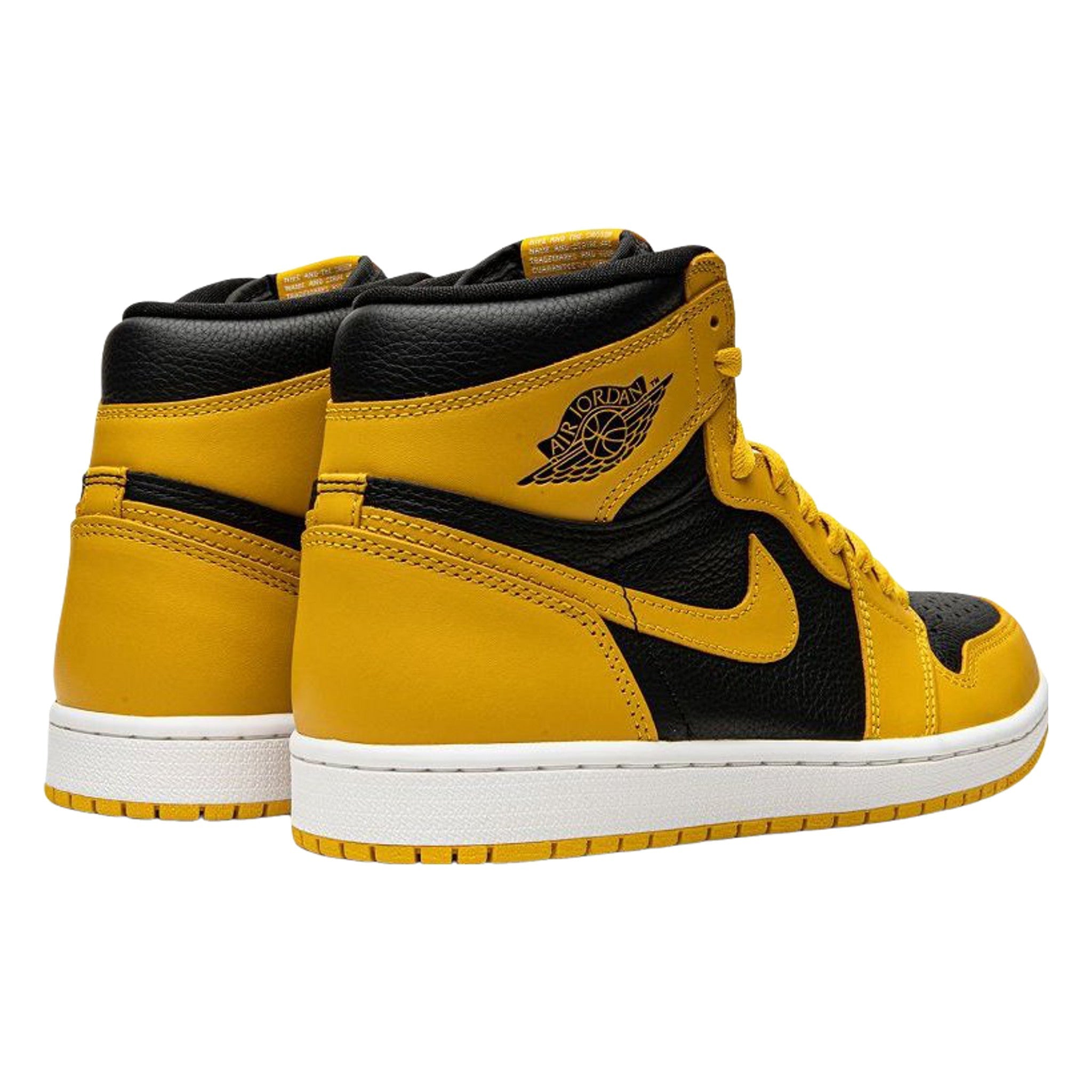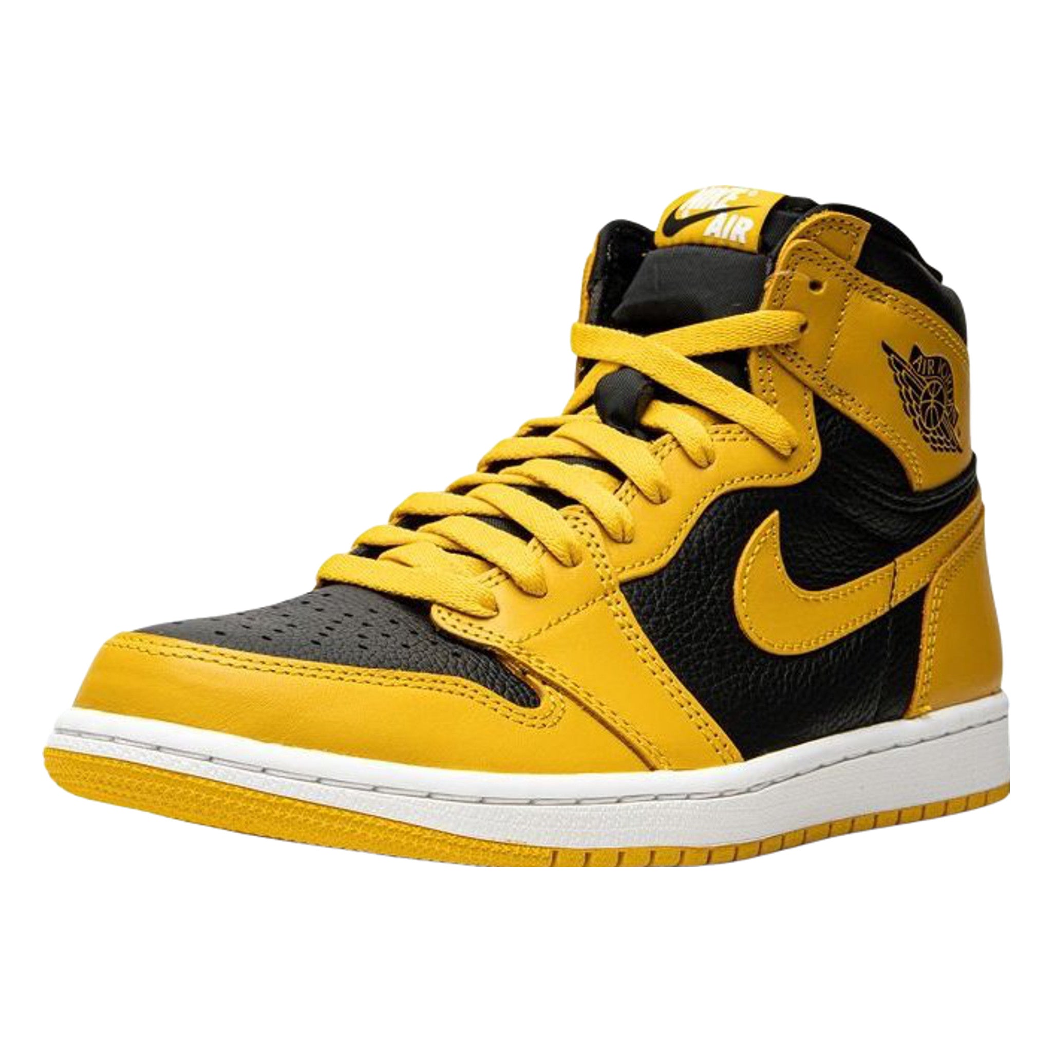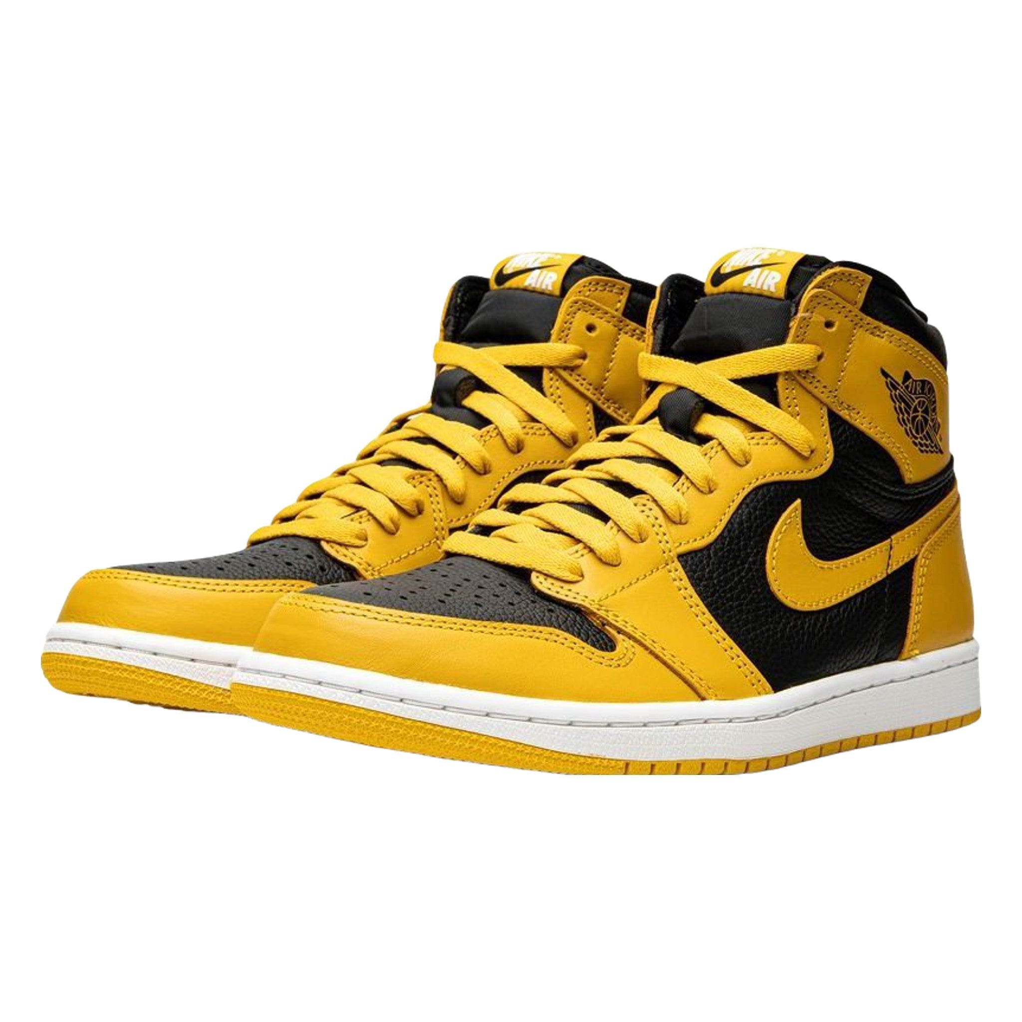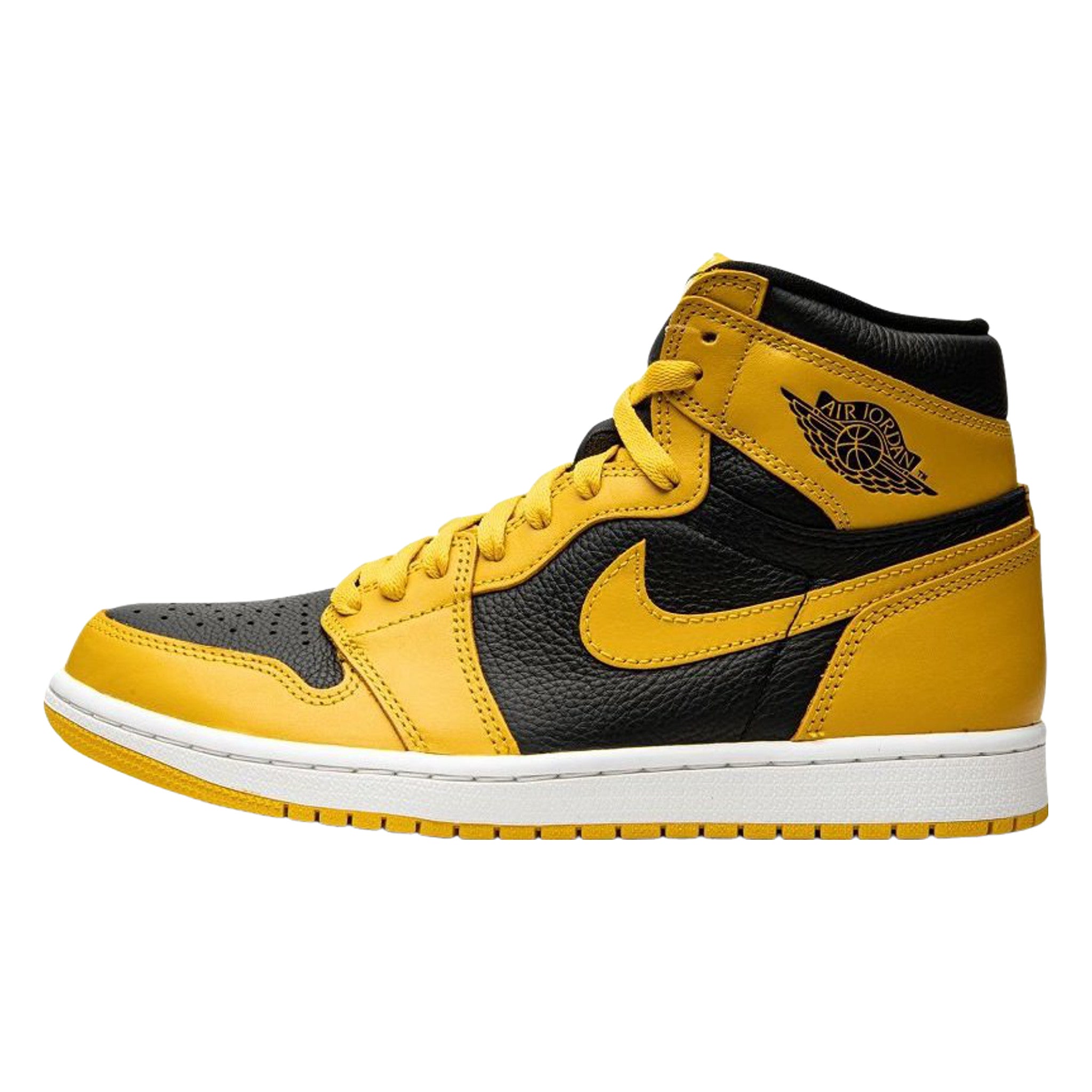 Yellow/black calf leather Ar Jrdn 1 High OG “Pollen” sneakers from Jrdn featuring signature Ar Jrdn Wngs...