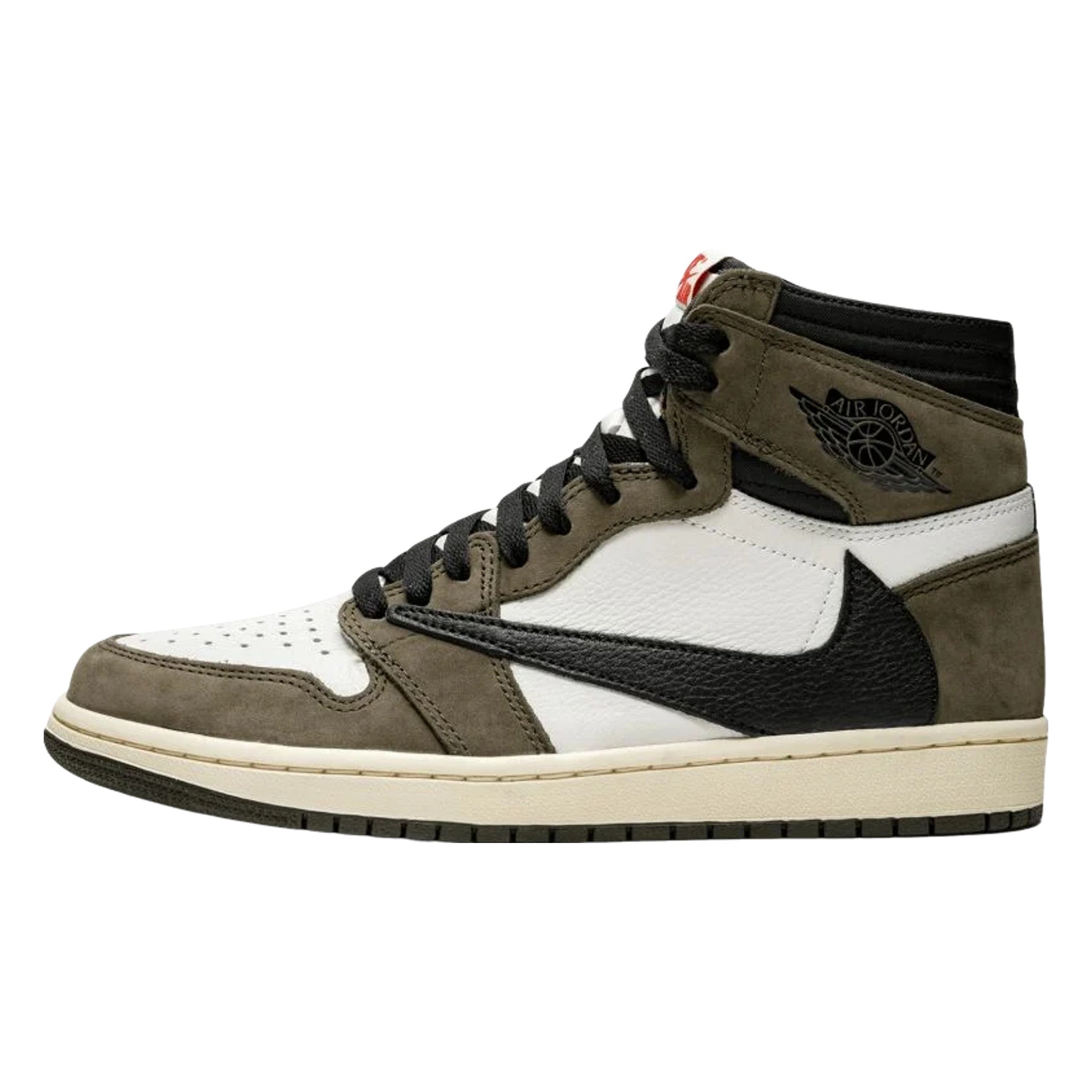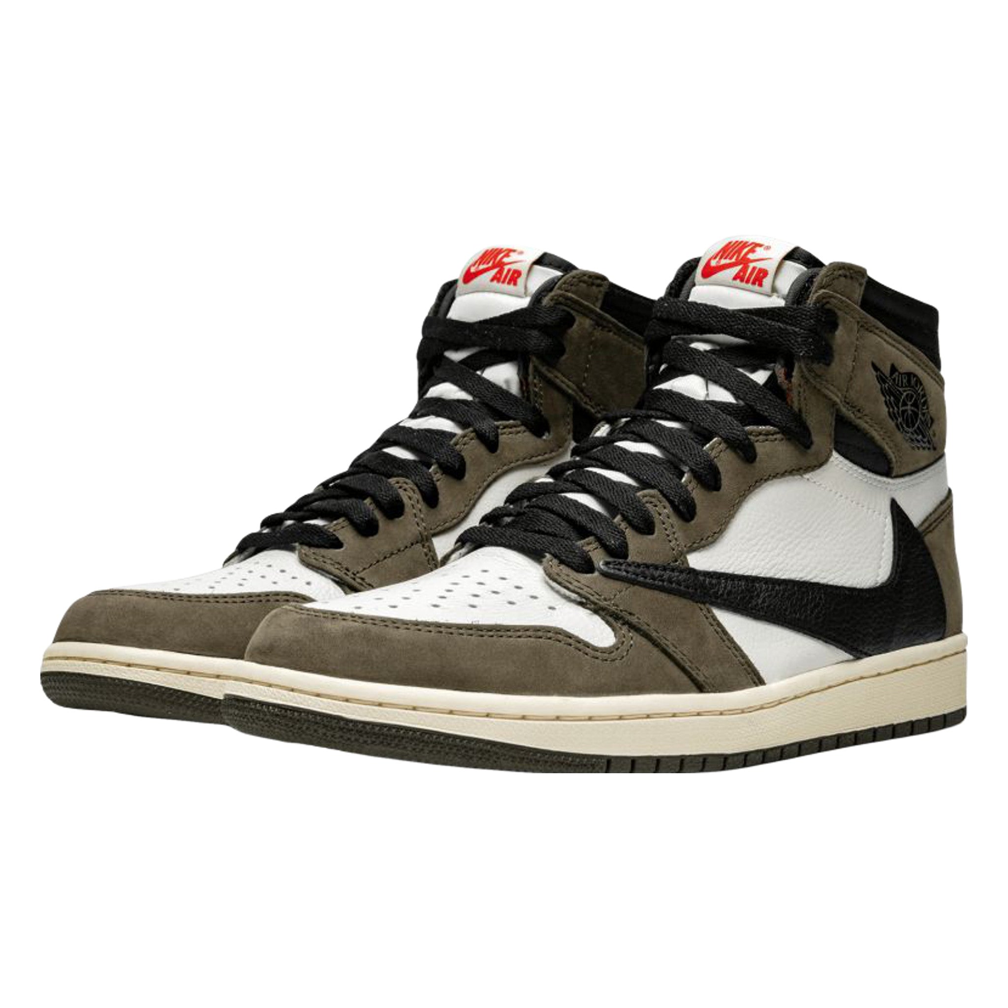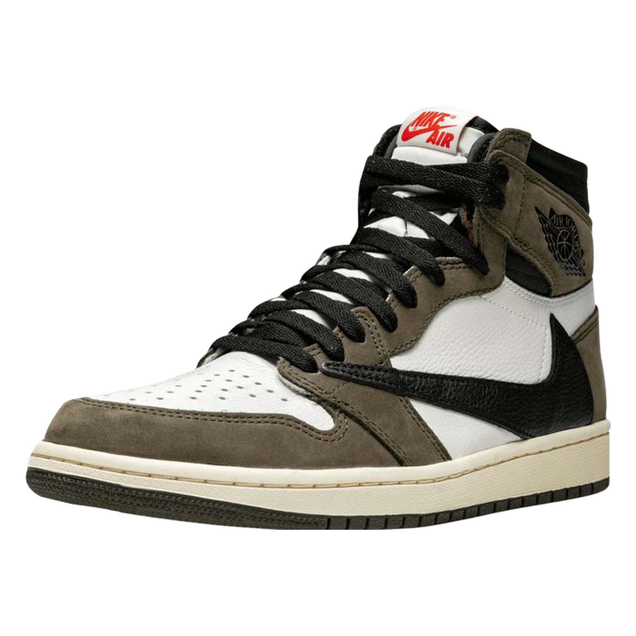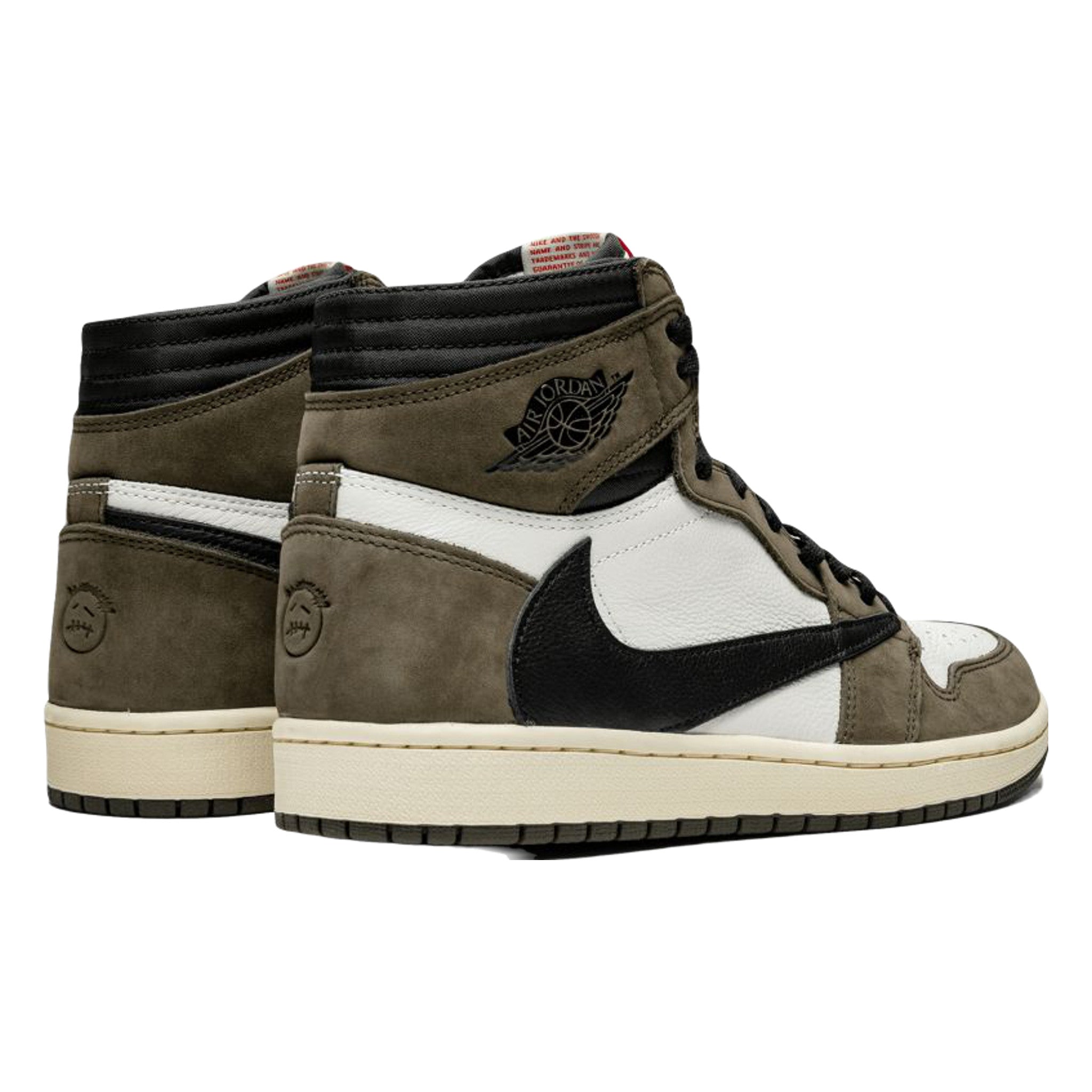 The Trvis Sctt x Ar Jrdn 1 Hgh OG is the limited edition collaboration from the rap superstar and Jrdn Brand on the iconic silhouette that features a major twist. One look at the Trvis Sctt x Ar Jrdn 1 and you’ll notice the backwards across the upper, a first for the legendary silhouette. Travis Scott’s Ar Jrdn 1 also features a premium construction in Sail leather and Dark Mocha nubuck with black accents. The Jrdn 1 is further modified with a padded nylon collar that has a hidden stash pocket. Each pair is completed with Stt’s “face” logo embossed on the heels and a “Cactus Jack” logo on the right insole. The Trvis Sctt x Ar Jrdn 1 High had a special release at the Grammy Awards on February 10, 2019 during Scott’s performance, and then received a wider, but still limited release on April 26, 2019.