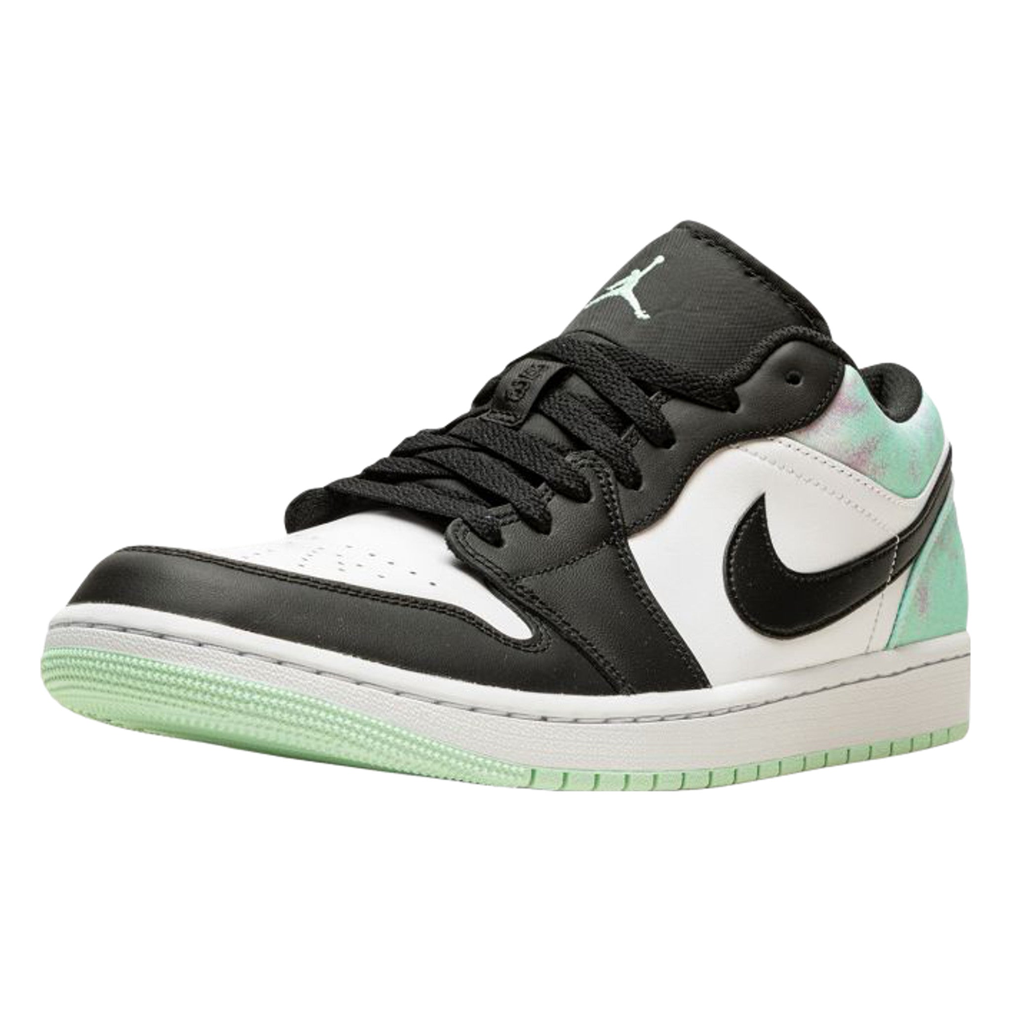 The Ar Jrdn 1 Low “Tie-Dye” is a fun, summer-ready colorway of the classic sihouette. This fresh sneaker features signature “Black Toe” AJ1 blocking with a white leather base, black leather overlay and pastel green and purple tie-dye hits on the collar and heel. A black Jrdn Wings logo on the heel and a white logo on the tongue bring it all together.