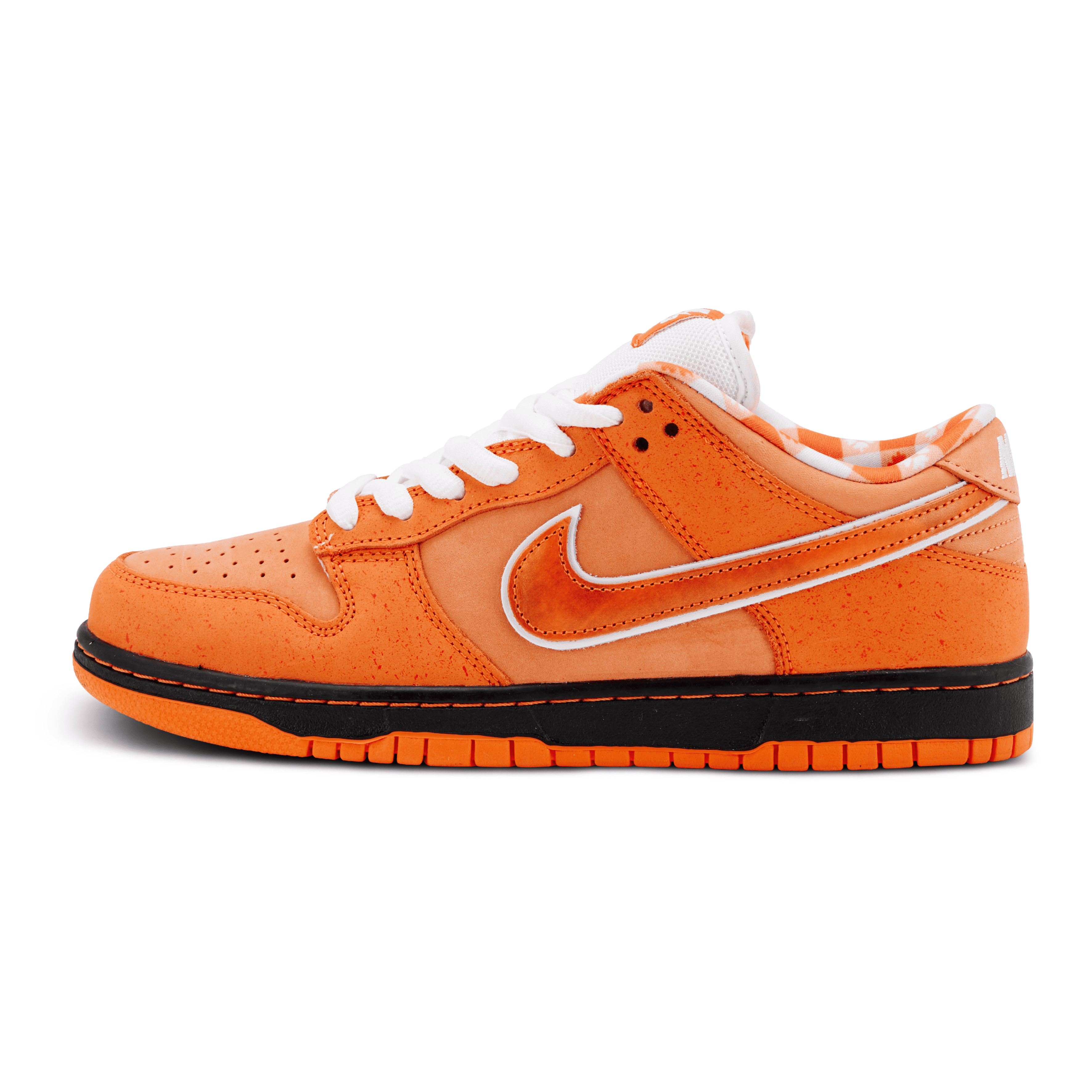 The Concepts x Nke SB Dnk Low “Orange Lobster” is a limited edition collaboration between the Boston based sneaker boutique and Nke SB on the skate shoe that continues its popular “Lobster” series. Introduced by Concepts and Nke SB in 2008, the “Lobster” collection is a nod to Concepts’ Boston area roots and its cuisine. The series has featured several iconic SB Dnks, including the “Red Lobster,” “Blue Lobster,” “Green Lobster,” “Yellow Lobster,” “Purple Lobster,” and now the “Orange Lobster.” Similar to previous colorways in the line, the “Orange Lobster” features a tonal design, this time in orange. A black rubber band appears on the forefoot as a reference to the bands that keep a lobster’s claws closed. A white and orange picnic blanket inspired checkerboard pattern is found on the interior lining.