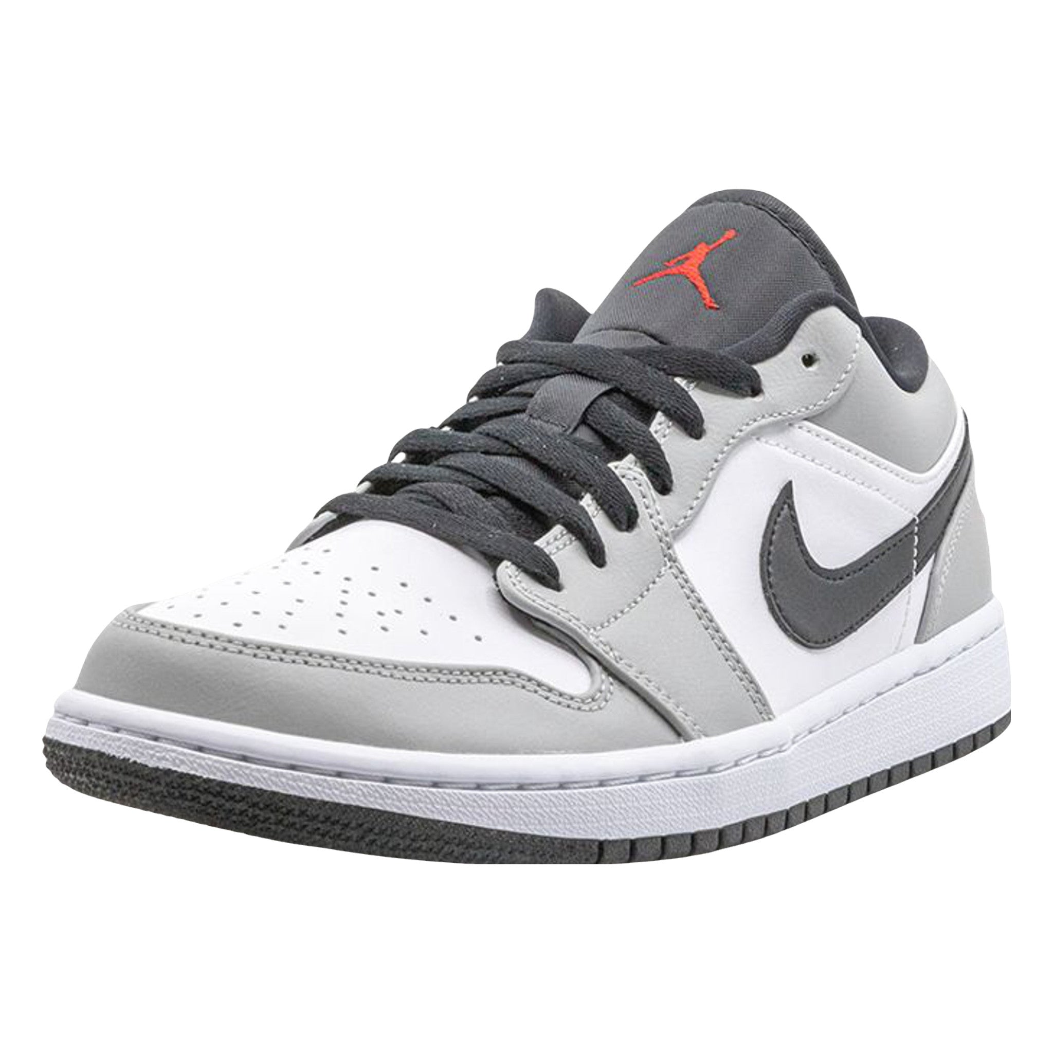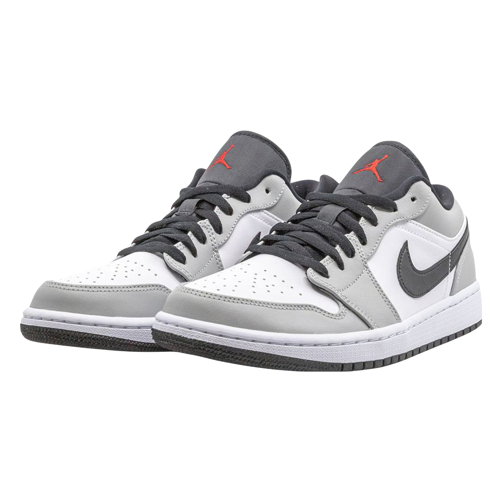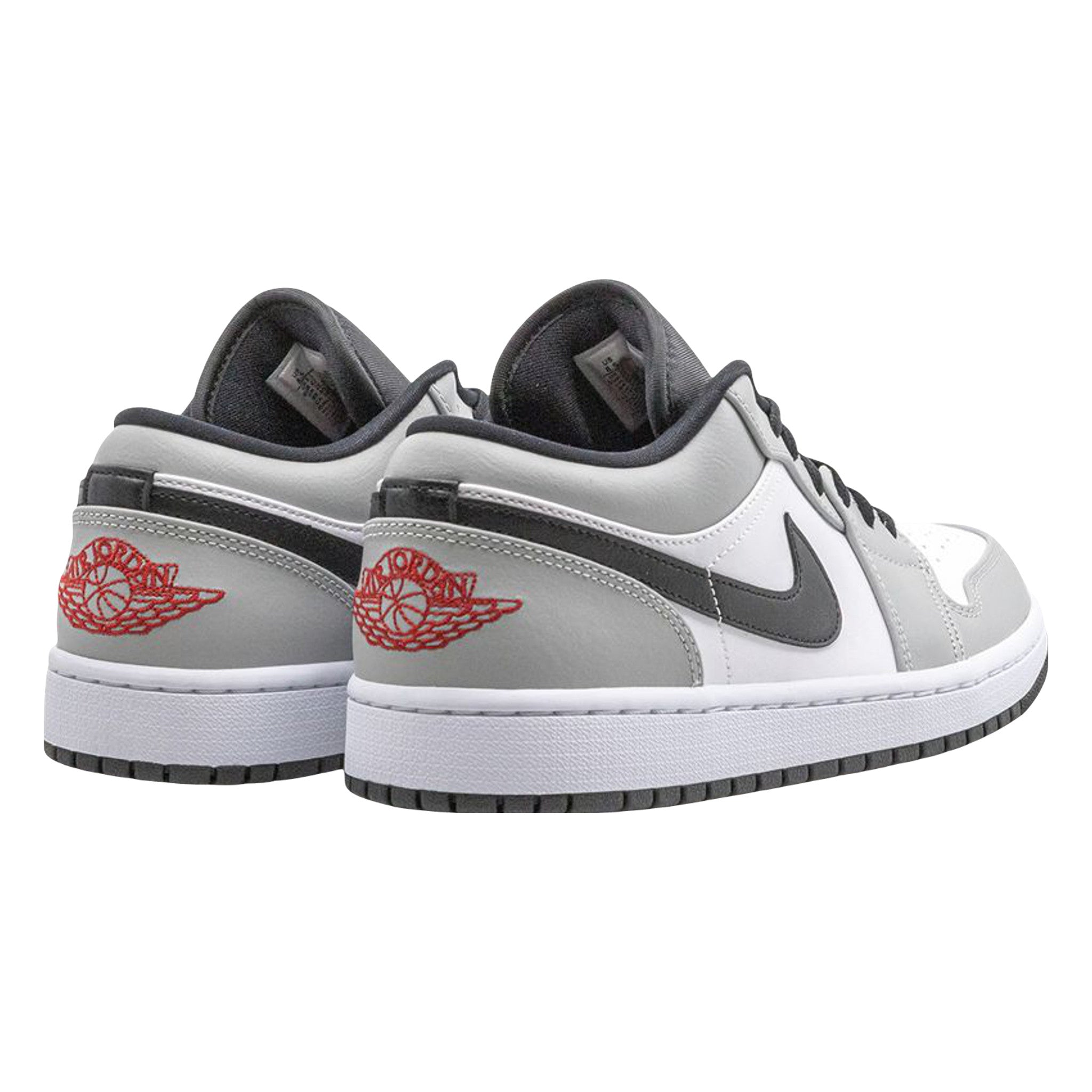 The Ar Jordn 1 Low “Light Smoke Grey” features a neutral look that highlights the versatility of Michael Jrdn’s iconic first signature shoe in low-top form. The Jrdn 1, one of streetwear’s most popular sneakers of choice, adds a vintage flair to your collection with a timeless design. The same ethos underpins this “Light Smoke Grey” edition. Smooth white leather covers the perforated toe and mid-panel. Light Smoke Grey leather overlays on the forefoot, eyelets, collar, and heel add subtle contrasting to the appearance of the shoe. A black leather Swoosh dots the mid-panel and red embroidered “Wings” and detailing appear on the heel and black nylon tongue, respectively.
