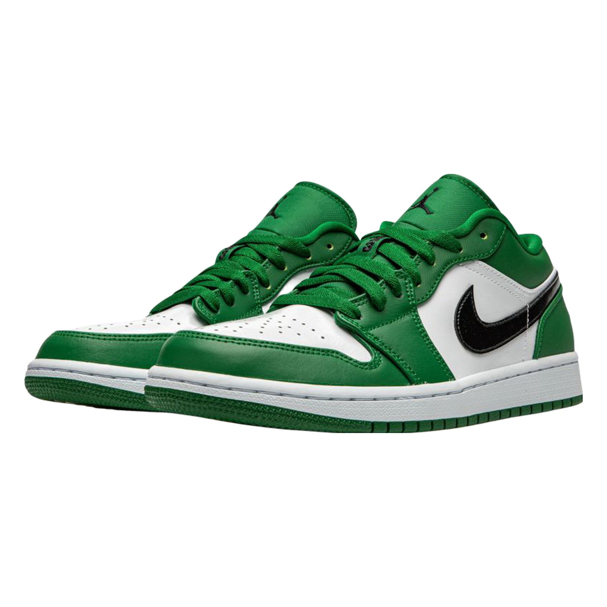 The Ar Jrdn 1 Low “Pine Green” channels the team uniform colors of one of Michael Jordan’s closest rivals during his playing career: the Boston Celtics. Seen here in versatile low-top form, Jrdn's first signature shoe is equipped with green leather overlays on the forefoot, collar, and eyelets. The hue reappears on the heel and nylon tongue. Both the toe and midfoot are finished off with a crisp with leather. Black detailing covers the mid-panel, a black Wings logo can be found on the heel, and a mini emblem dots the tongue to complete the look.