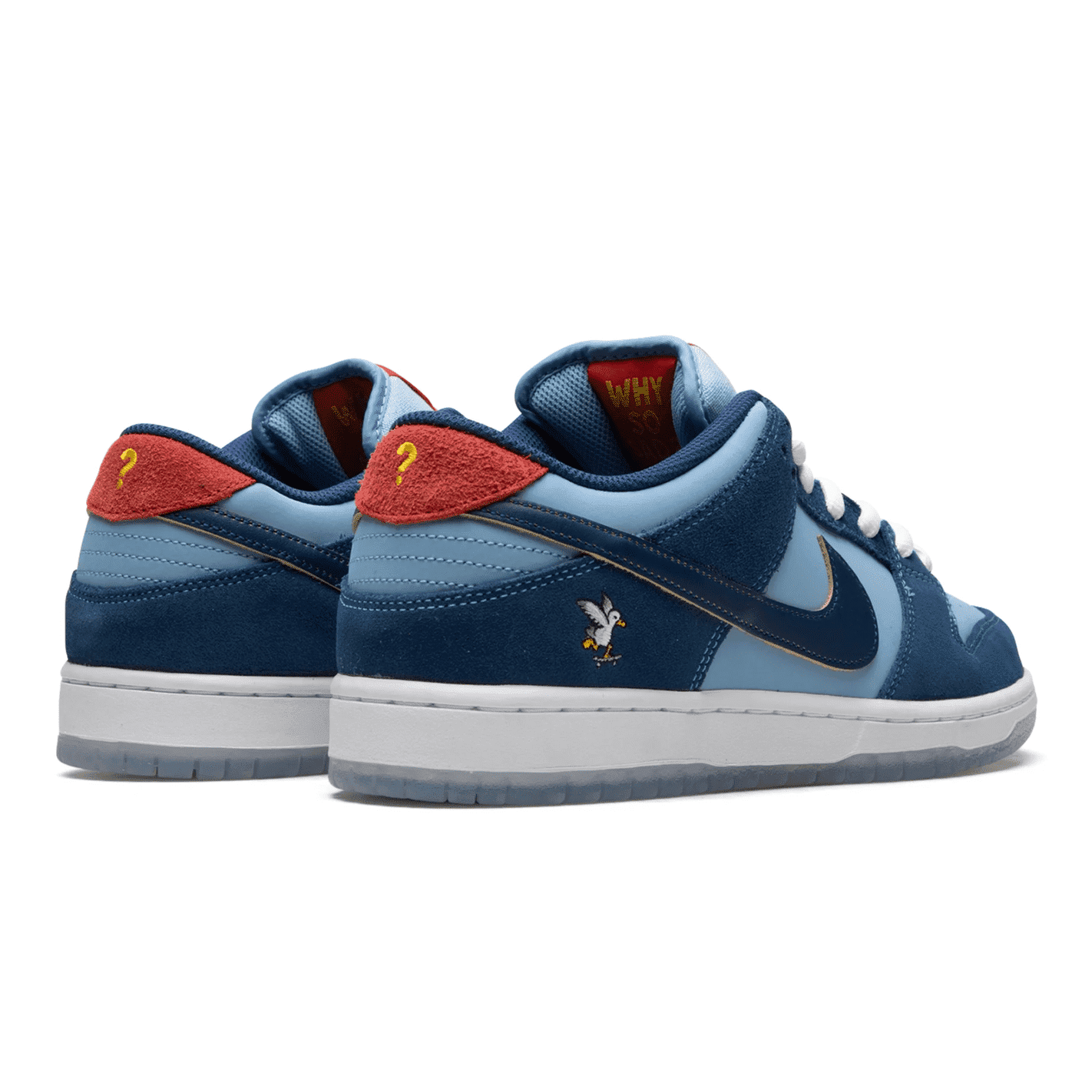 The Why So Sad? x Nke Sb Dnk Low is a special collaboration between pro skater John Rattray’s mental health initiative and Nke Sb on the classic skate shoe. Rattray, an advocate for mental health, started his “Why So Sad?” campaign as a way to raise awareness for suicide prevention in skateboarding and beyond. His take on the Sb Dnk aims to open up the conversation about the importance of mental health in skateboarding. The shoe features a Coastal Blue leather base that’s contrasted with dark blue leather overlays and branding, both of which feature a tear-away design that reveals yellow accenting after significant wear. An embroidered logo of a bird is found on the lateral side of the heel. Yellow “Nke Sb Dnk Low Pro” insignia is found on the red nylon tongue tag. A yellow question mark is embroidered on the red suede heel tab. Underfoot, a white rubber midsole and icy blue translucent outsole complete the look.