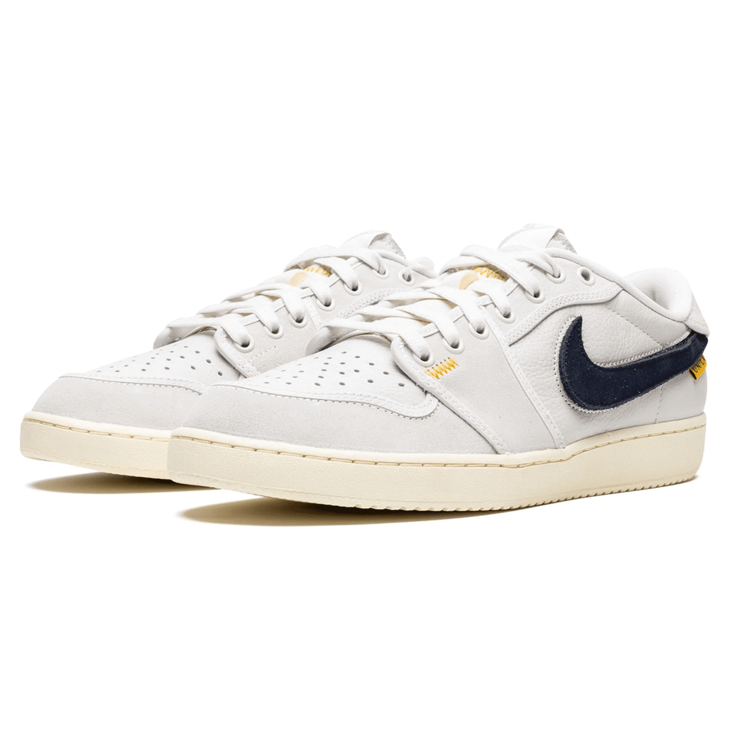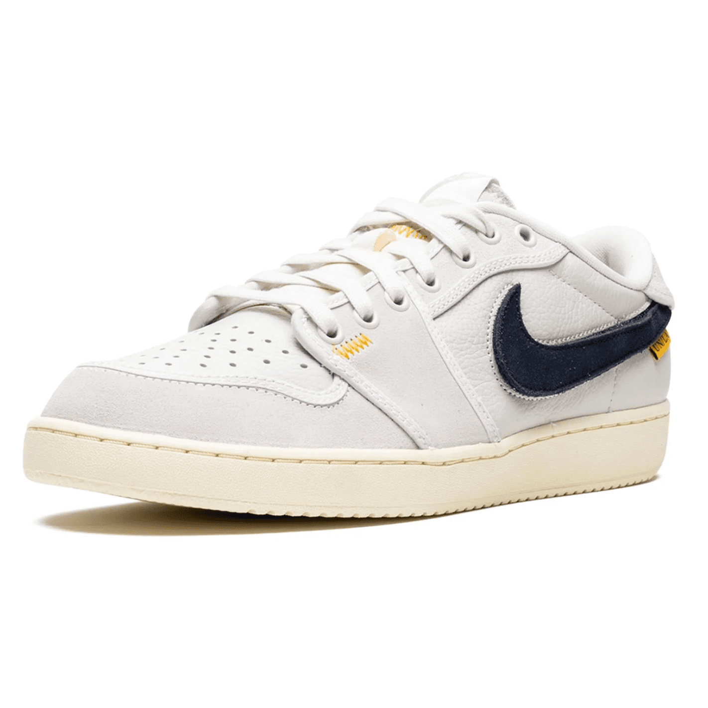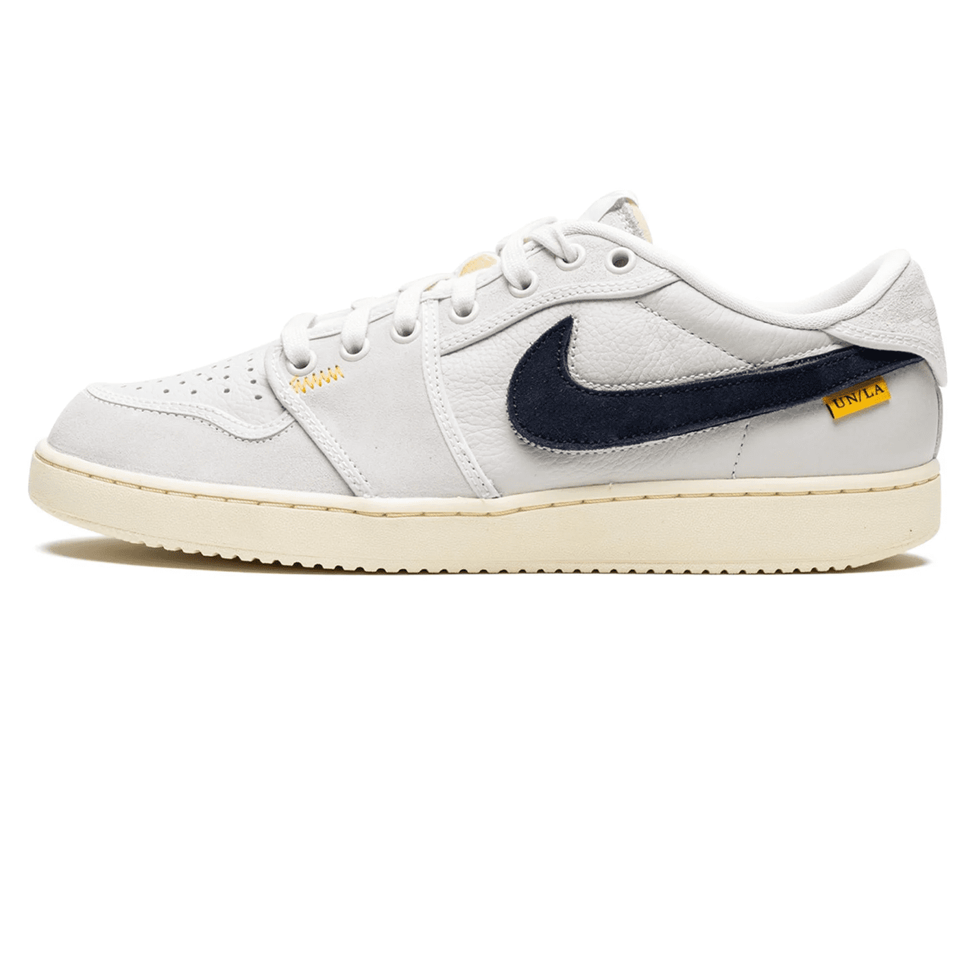 The Union LA x Ar Jrdn 1 KO Low “Sail” is a collaboration by the popular clothing and sneaker boutique on an alternate version of the classic sneaker. Union’s Jrdn 1 KO Low marks the first-ever release of the model in low-top form. The original Ar Jrdn 1 KO was released in 1985 and based on the Jrdn 1, but switches up the latter’s leather design for canvas. Here, Union replaces the Jrdn 1 KO’s canvas build with leather for a unique look. The shoe features a Sail-colored leather and suede upper. A black appears on either side. “AJKO Wngs” branding is located on the heel, and Union’s logo is printed on the insole. Elsewhere, a yellow tab with “UN/LA” branding is attached to the on the lateral side of the shoe.