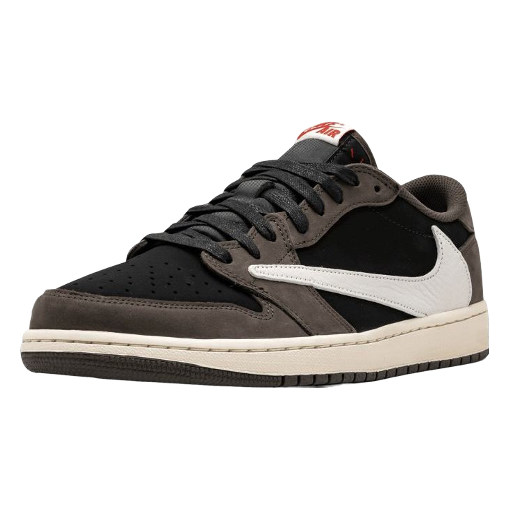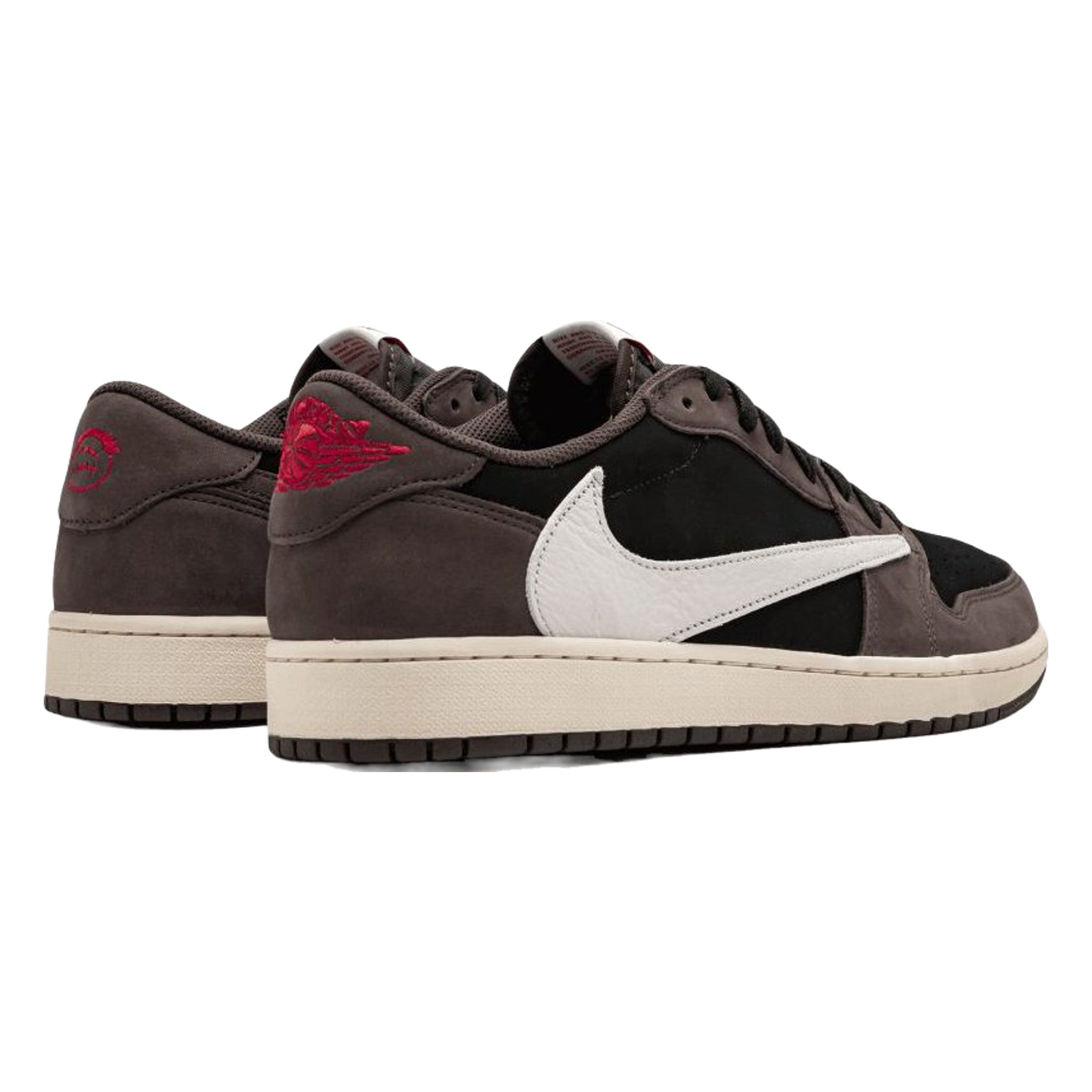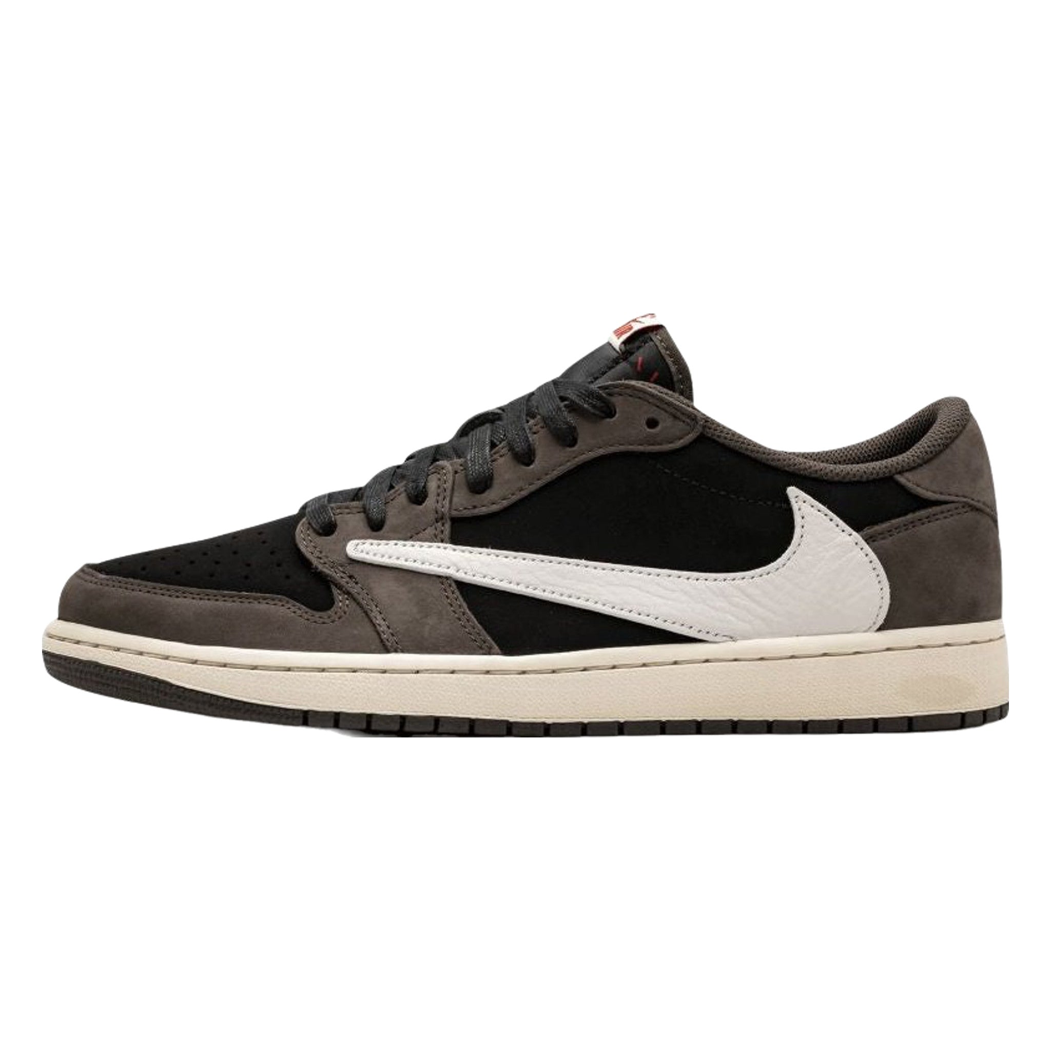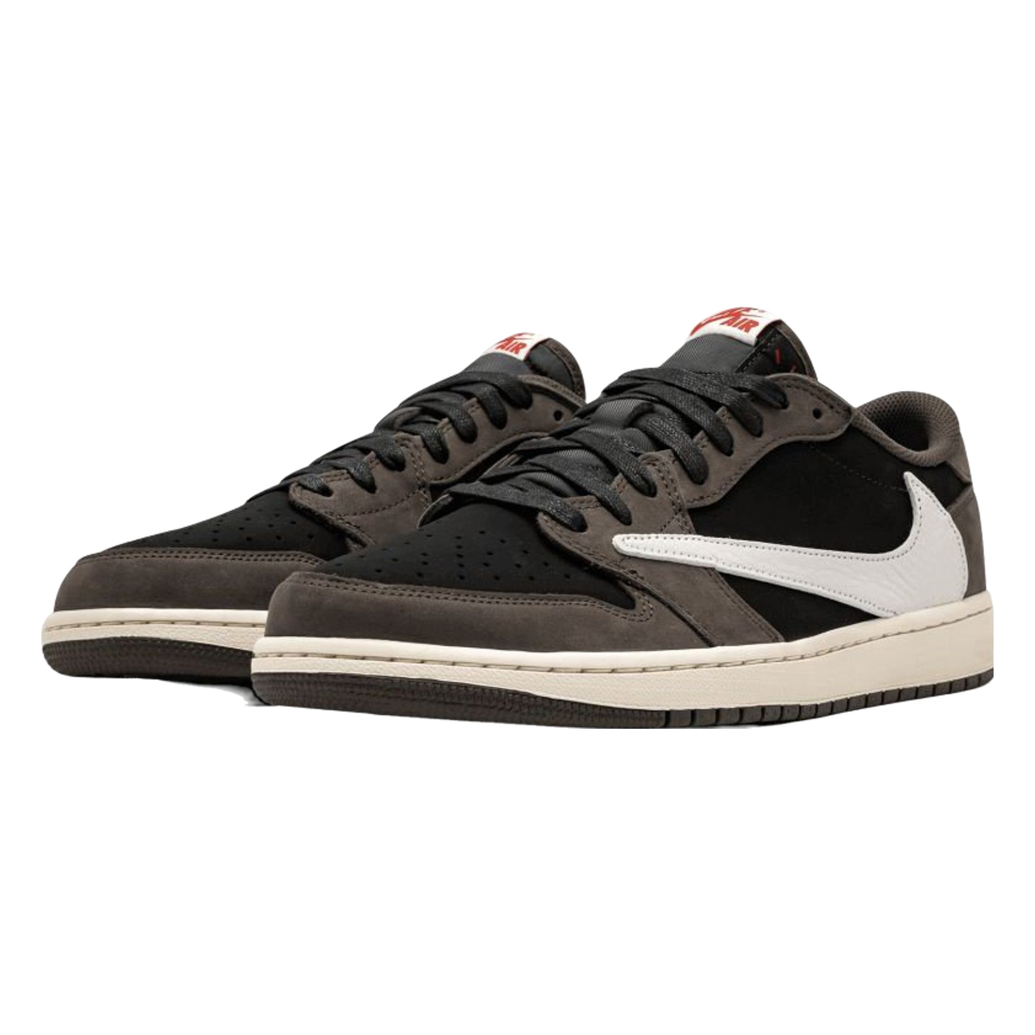 The Trvis Sctt x Ar Jordn 1 Low is the low-top version of the world famous rapper’s Jrdn 1 collaboration. Following the standard high-top Jrdn 1 from spring 2019, this Jrdn 1 Low by Trvis Sctt released in July in very limited quantities and achieved the same hype and coveted status as the first design. Scott once again displayed his affinity for earthy tones while also utilizing the same backwards design as the initial high-top. The upper is constructed in premium nubuck with black and brown tones, while the large reversed Swoosh contrasts in white leather. Red highlights are found on the tongue tags and embroidered heel logos, while a Sail midsole completes the clean design.