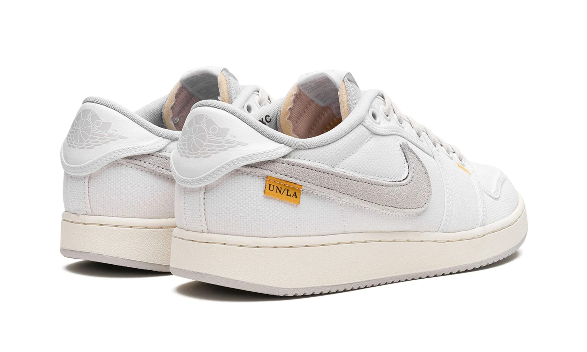 The Union LA x Ar Jrdan 1 KO Low “White” is a collaboration by Cthe popular clothing and sneaker boutique on an alternate version of the classic sneaker. Union’s Jrdan 1 KO Low marks the first-ever release of the model in low-top form. The original Ar Jrdan 1 KO Mid was released in 1985 and based on the Jrdan 1, but switches up the latter’s leather design for canvas. Here, Union replaces the Jrdan 1 KO’s canvas build with leather for a unique look. The shoe features a Sail-colored leather and suede upper. A Neutral Grey appears on either side. “AJKO Wngs” branding is located on the heel, and Union’s “Frontman” logo is printed on the insole. Elsewhere, a yellow tab with “UN/LA” branding is attached to the on the lateral side of the shoe.
