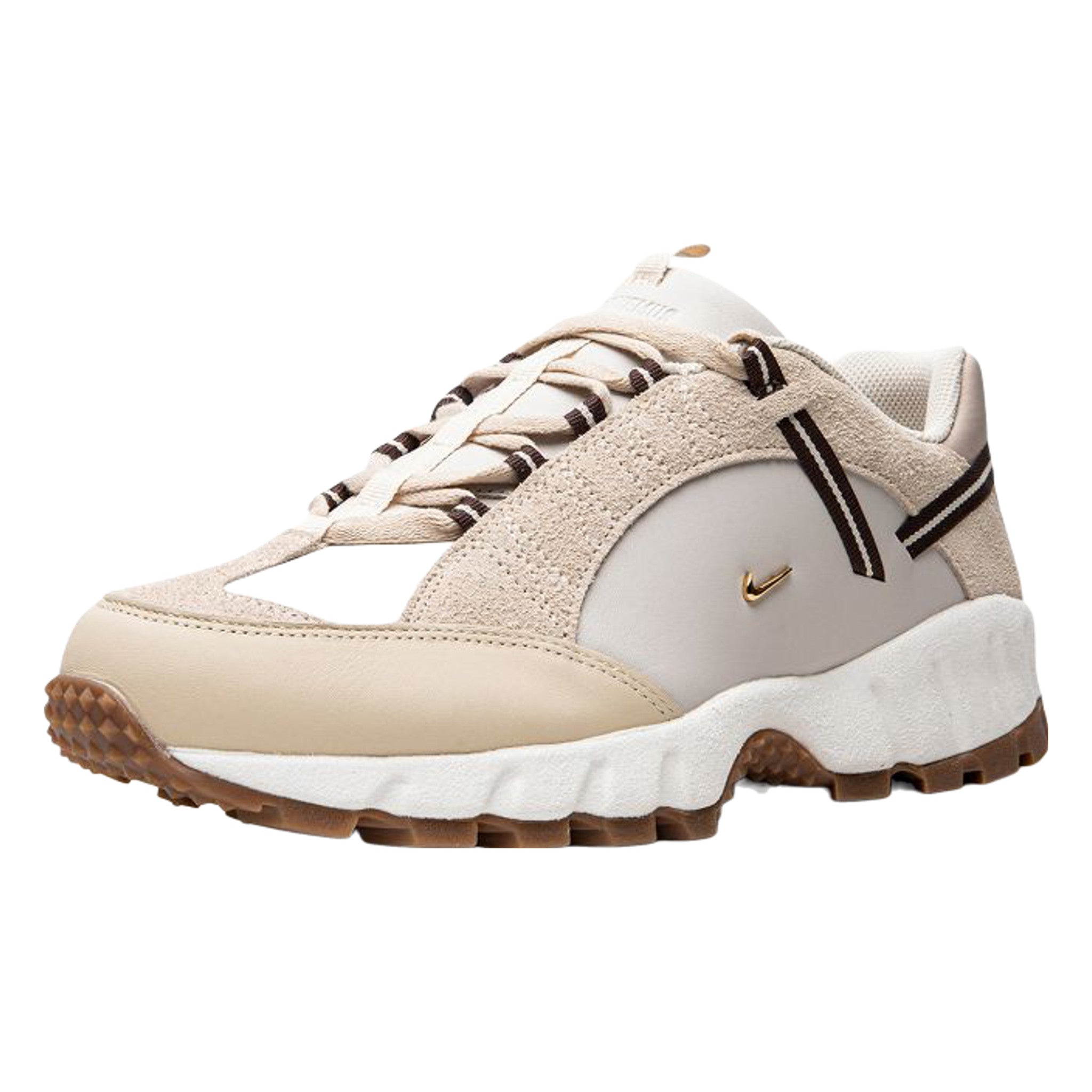 Designed in partnership with Jcquemus, the Nke Ar Hmara LX puts a premium spin on the classic trail sneaker. This pair is built with soft beige suede overlays and a white leather upper, while a gold-tone logo decorates the sides. The Hmara's signature fabric stripes appear on the lacing and heel, while a chunky midsole coated in white suede with a gum rubber outsole finishes the look.