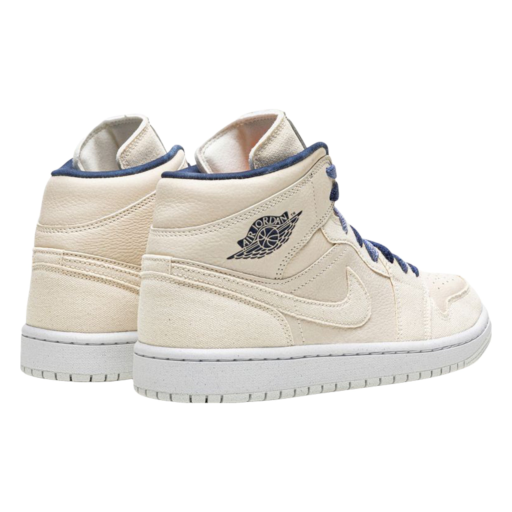 The Women’s Ar Jordn 1 Mid “Sanddrift” is a women’s-exclusive colorway of Michael Jordn’s first signature shoe in a clean, neutral look. This casual makeup of the popular Jordn 1 Mid features a mostly monochromatic beige or Sanddrift upper in canvas and leather. The former material is found on the shoe’s toe cap, forefoot, eyelets, and heel. The perforated toe, mid-panel, and collar are constructed in Sanddrift-colored leather. A tonal canvas is found on the sides and a Midnight Navy “Wings” logo appears on the collar. Additional navy accenting comes into play on the inner lining and laces. A debossed beige logo appears on the tumbled leather tongue tag.