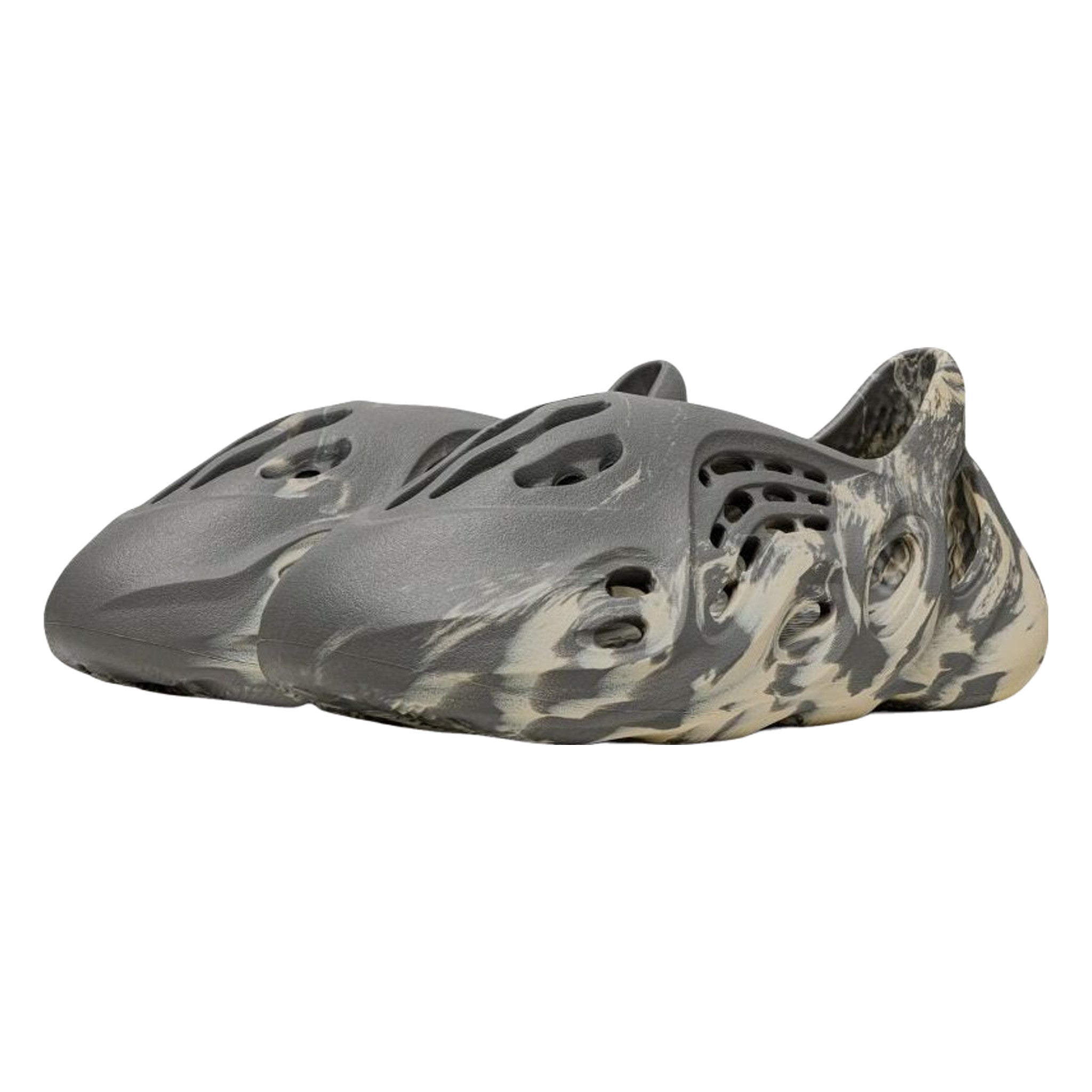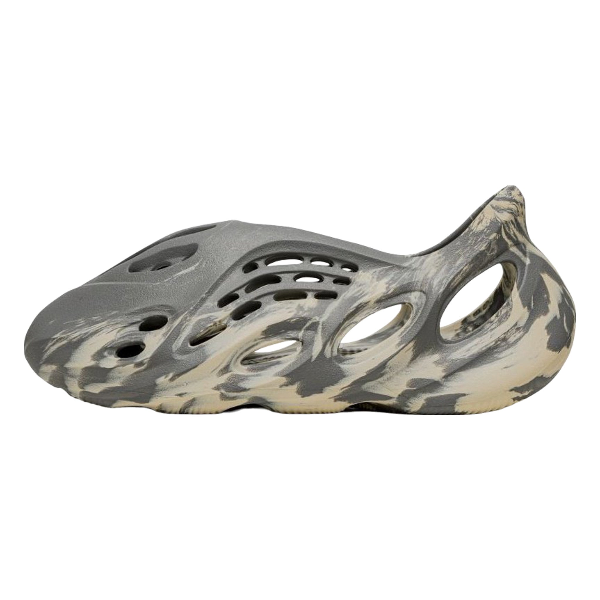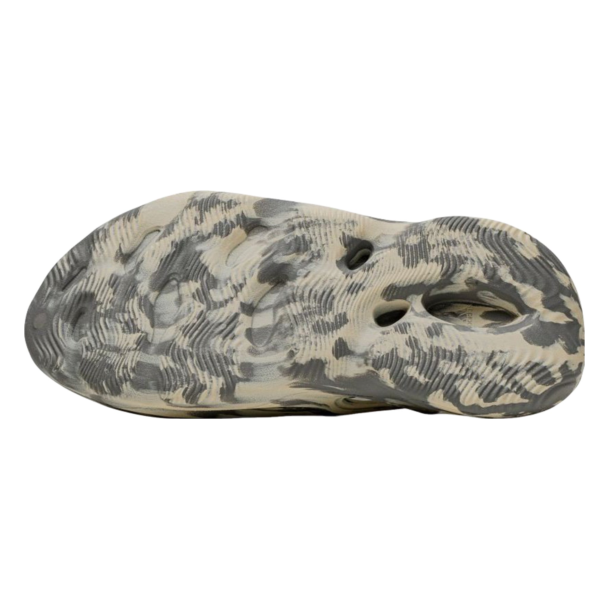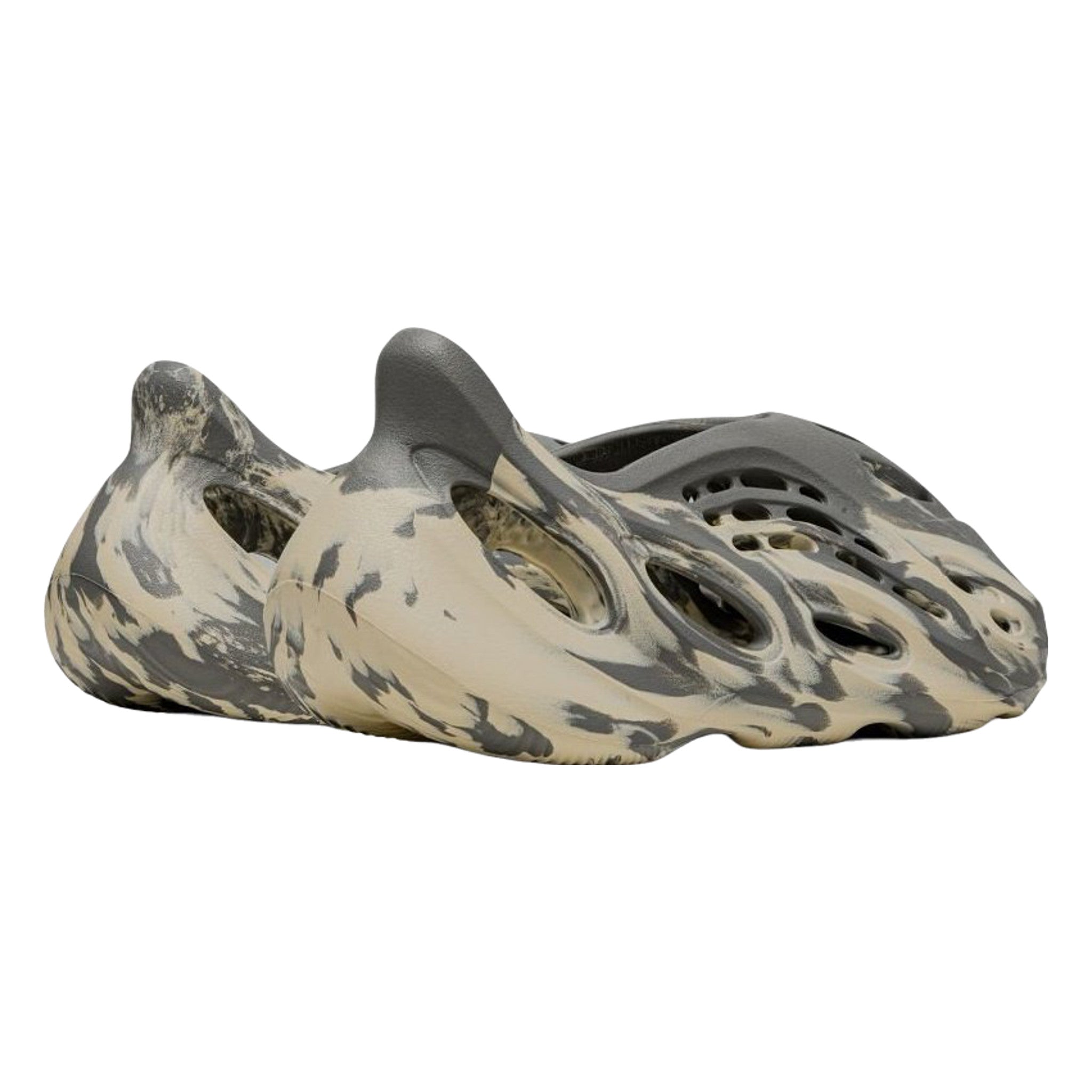 The Yzy Foam Runner MX “Moon Gray” is an innovative piece of footwear designed by Kanye West. The Yzy Foam RNNR (Runner) debuted in Summer 2020 and is a cross pollination between a traditional slip-on sandal and shoe. The ultra lightweight design with various perforations across the upper is composed of a mixture of EVA foam and harvested algae. The first edition of the Foam RNNR labeled "MXT," which seemingly stands for "mixed," the “Moon Grey” colorway features a marbled blend of dark gray and tan.
