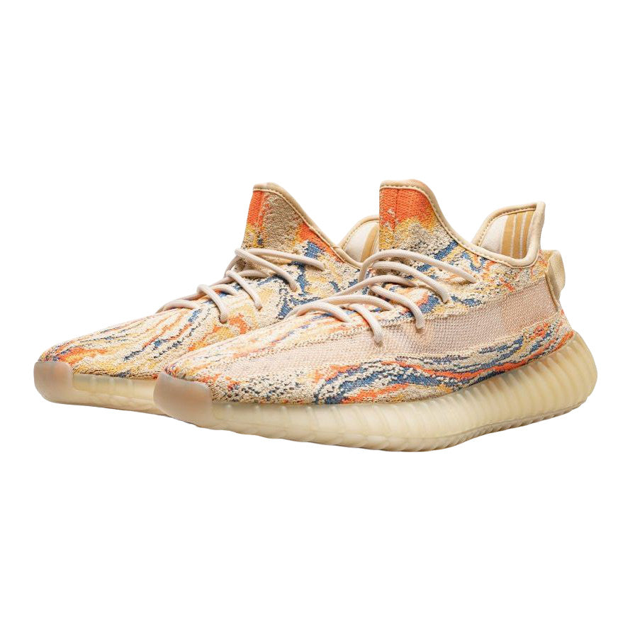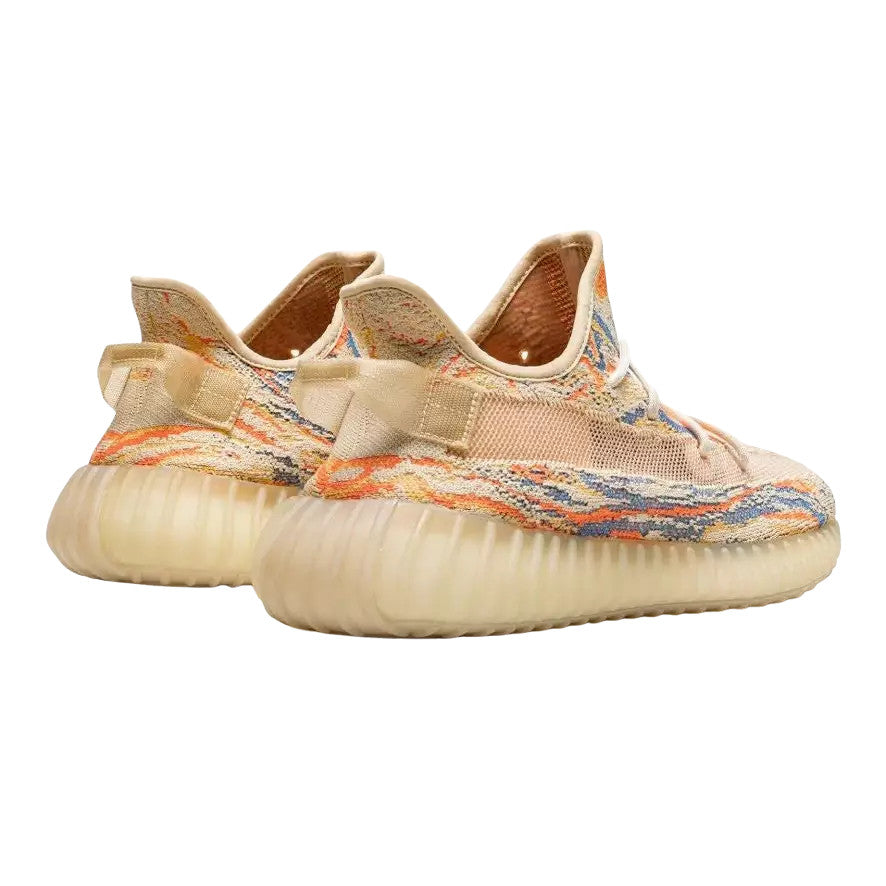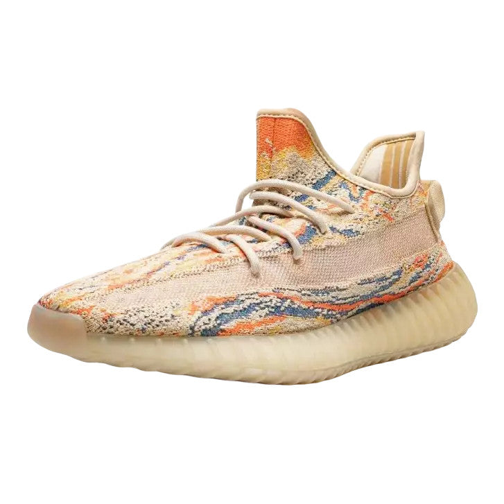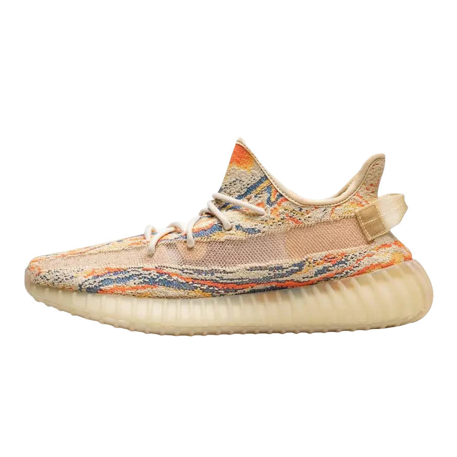 The adidas Yeezy Boost 350 V2 MX Oat features a brand new “MX” pattern on the upper and comes dressed in a Yellow Primeknit construction on the upper along with colorful swirl detailing pattern in Orange, Blue and Golden Yellow..........