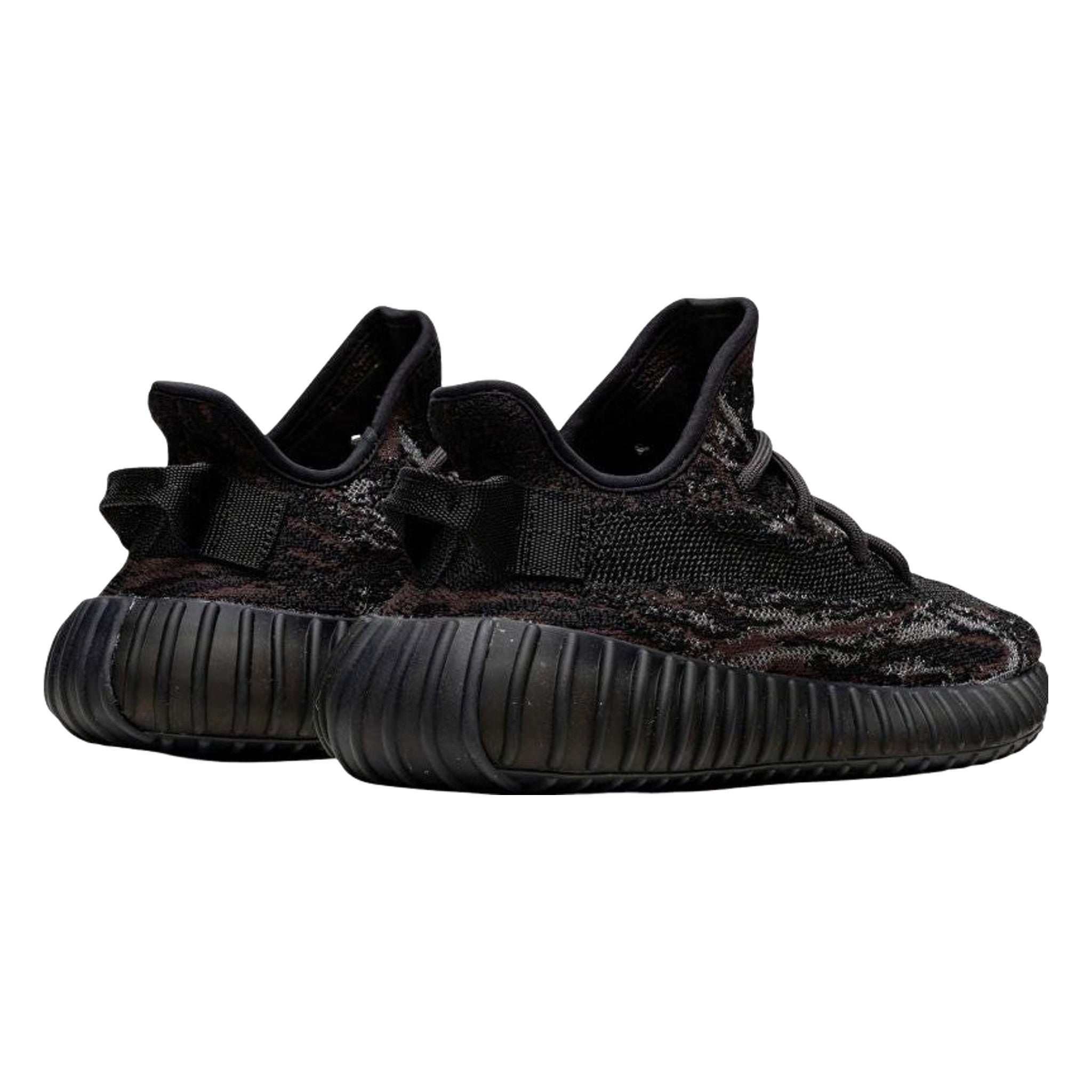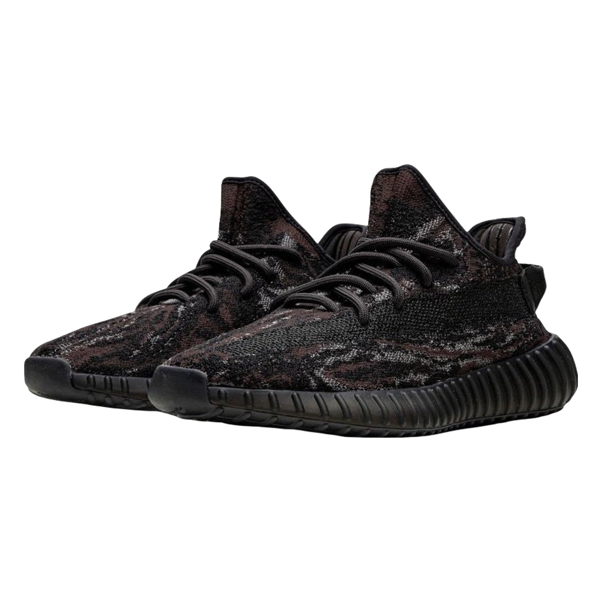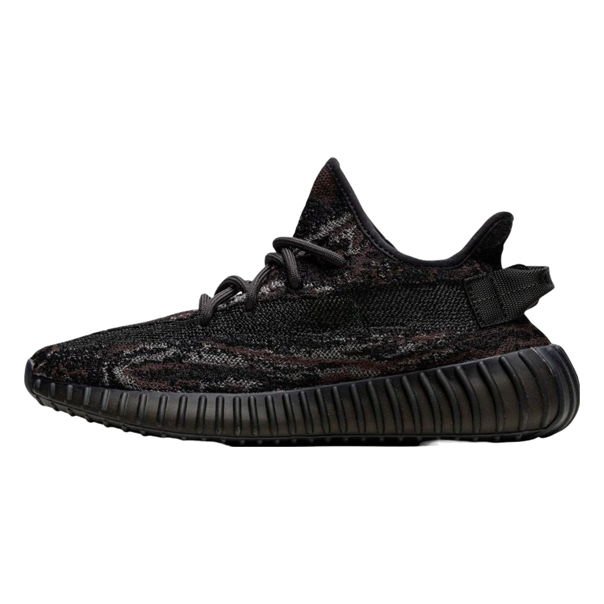 The Yzy Bst 350 V2 “MX Rock” is a December 2021 release of the casual lifestyle shoe by Kanye West in a design that features a marbled appearance. The “MX Rock” succeeds the “MX Oat” in bringing a new swirled style to the Yzy Bst 350 V2, a departure from the traditional layered look of the shoe’s original design. The woven Primeknit upper features swirls of brown and dark grey against a black base. Like many 350 V2s, a side monofilament stripe, this time in black, complements the colorway. Black laces appear on the top of the sock-like shoe. A black painted ribbed midsole housing Bst cushioning technology completes the design.