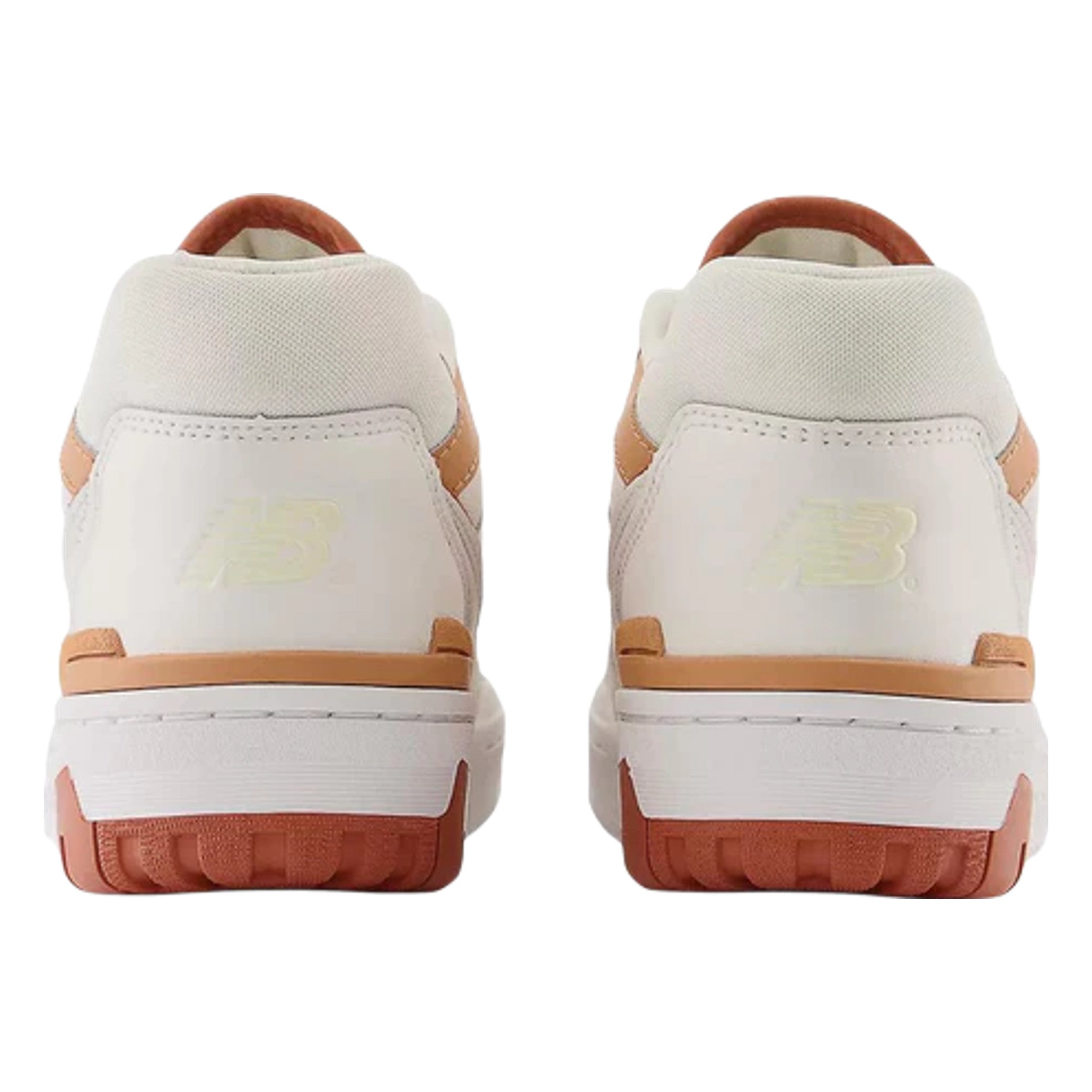 Drizzled in a delectable 'Au Lait' palette, this women's 550 exudes sophistication. Premium white leather forms the base, accented by soft tan suede overlays and a creamy 'N' logo. Hints of grey on the toes and a molded tan heel clip add subtle depth. Indulge your feet in plush comfort with the ABZORB midsole and rubber cupsole, perfect for all-day strolls or conquering your daily to-do list.