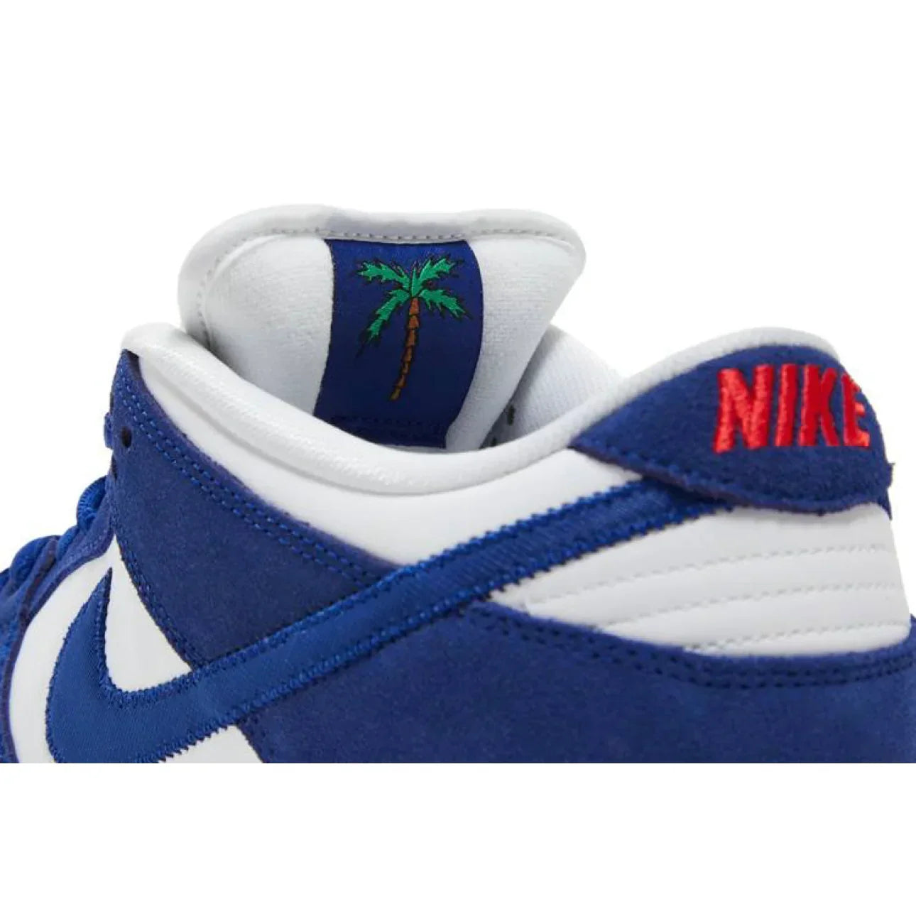The Nike SB Dunk Low "Los Angeles Dodgers" sneakers pay homage to the iconic baseball team with their distinctive colorway, blending deep blue hues with crisp white accents, reflective of the Dodgers' team colors. Red detailing adds a pop of contrast, mirroring the stitching of a baseball, while the premium leather and suede upper ensures comfort and durability. These sneakers are a must-have for Dodgers fans and sneaker enthusiasts alike, offering a unique blend of sports culture and street style. Perfect for game day or everyday wear, they celebrate the spirit and legacy of Los Angeles baseball.
