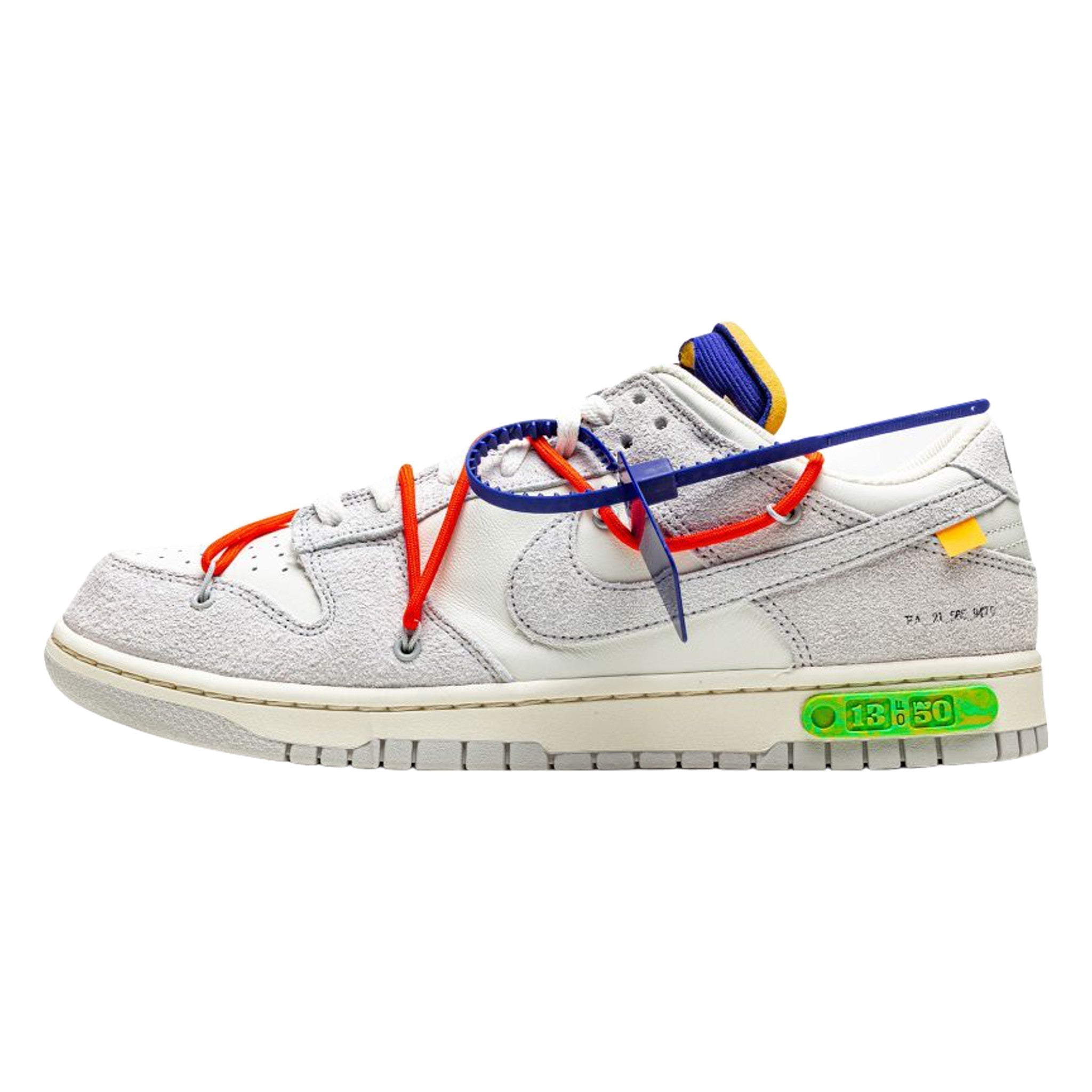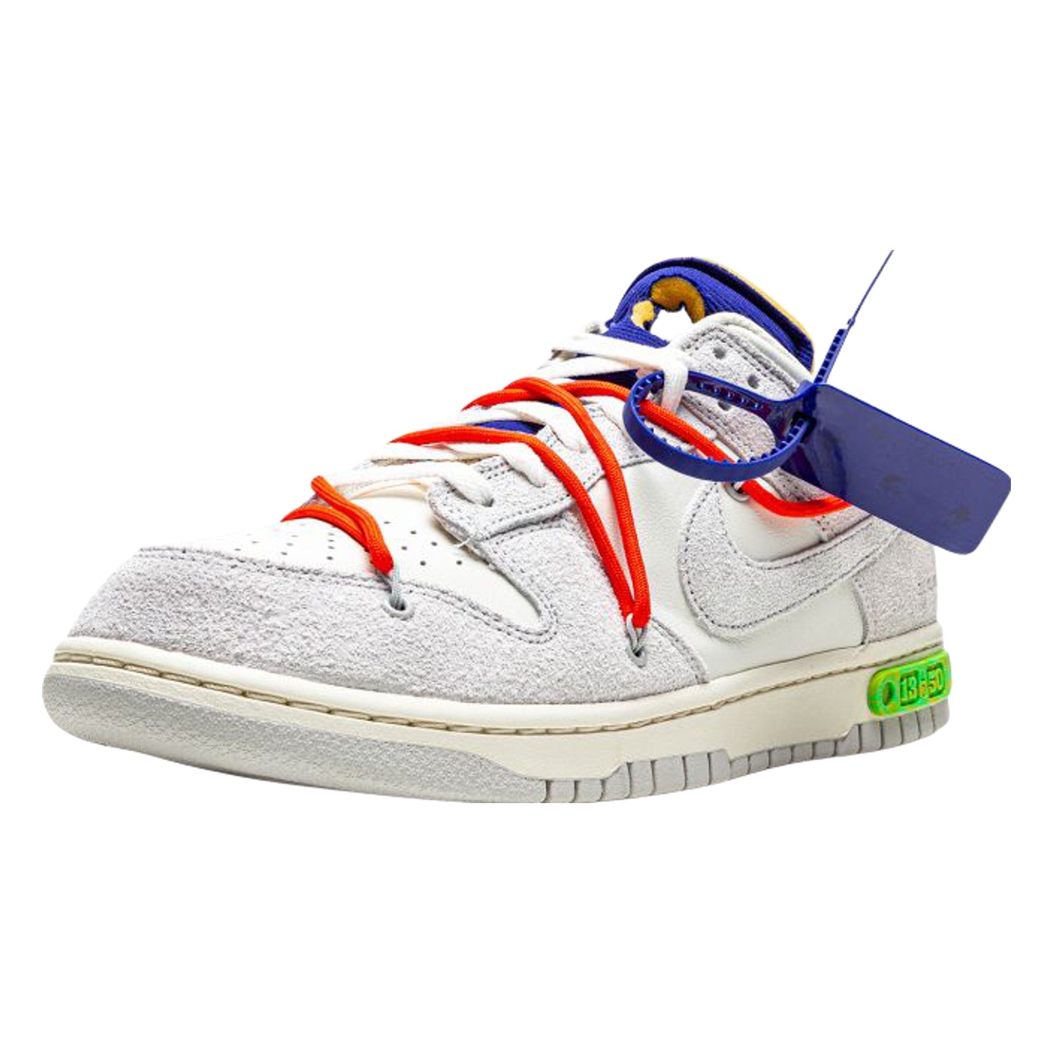 Virgil Abloh and Nke have teamed up once again for a new iteration of the Dnk Low. In a grey and white mix of suede and leather, and equipped with a logo on the side, the pair comes with overlaid rope lacing system from past Off-White™ x Nke Dnk Low collaborations. Also, to finish the look, there's signature text on the lateral quarter and a silver Nke Sportswear hit on the heel.