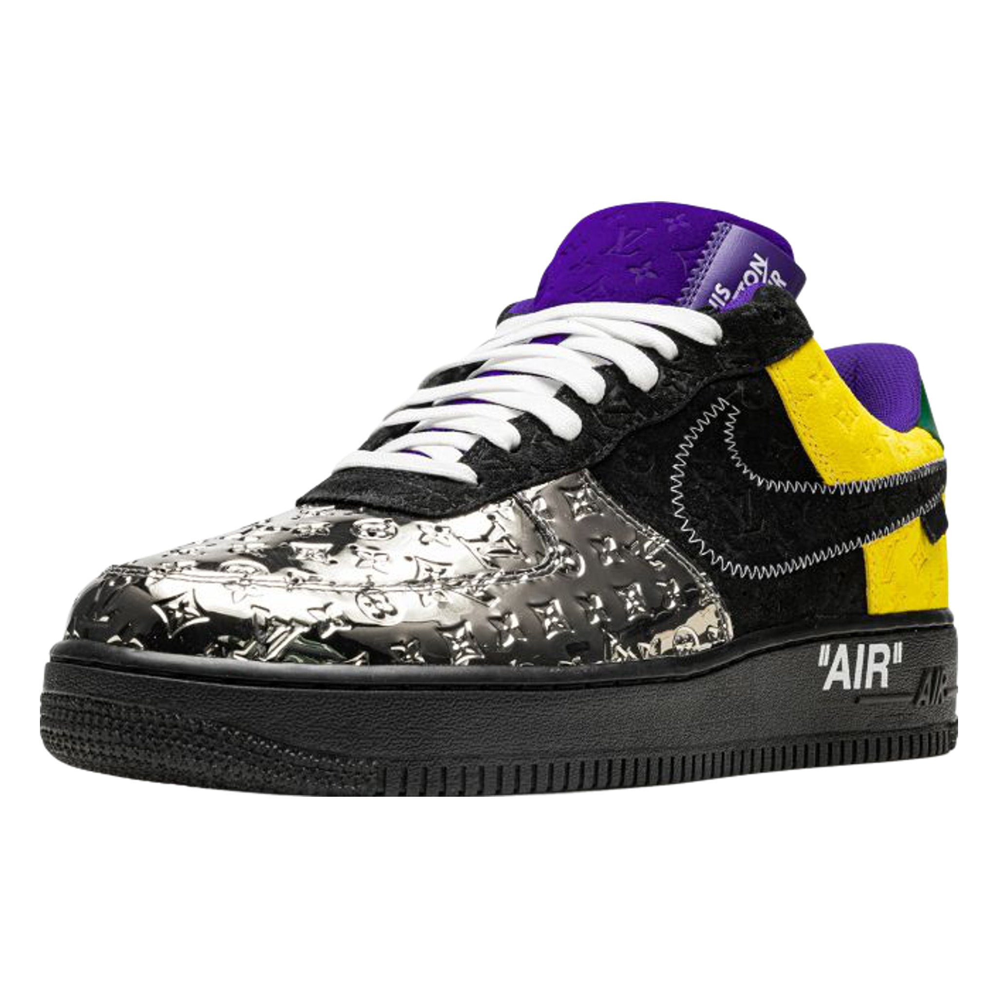 The Lv x Ar Frc 1 Low “Purple Dusk/Metallic Silver” is an eye-catching colorway included in the special collaboration between the revered high fashion brand that was directed by the late Virgil Abloh. From 2022, the “Purple Dusk/Metallic Silver” is one of multiple colorways of the Ar Frc 1 produced by Abloh, Lv, and Nk. It’s also one of the most head-turning looks from the series, as well. The shoe features a Metallic Silver leather toe and forefoot with Lv’s famous monogram print stamped into the material. The brand’s monogram print is also printed on the black suede mid-panel, and on the yellow leather heel panel. A stitched outline appears on either side of the shoe. Signature details include a reworked “Lv Ar Frc 1” logo on the side of the tongue, and a black tab on the lateral side of the Swoosh on the mid-panel. The shoe rides on a black rubber sole. Contrasting white “Ar” branding is printed on the lateral side. Made in Italy.
