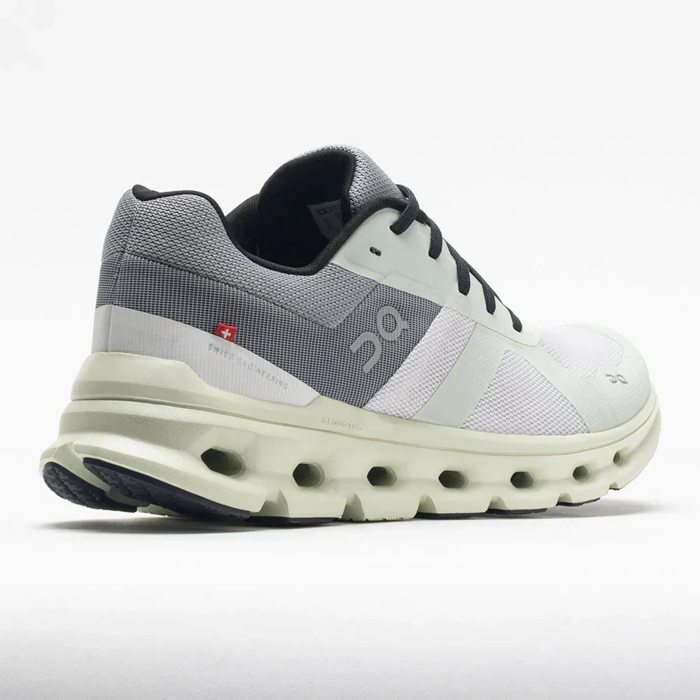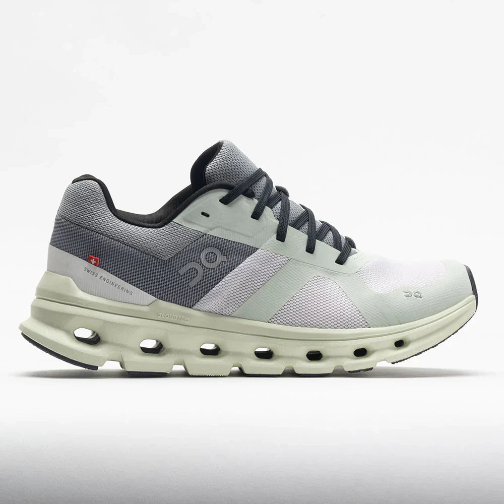 The On Cloudrunner Women's in Frost/Aloe, available at Sportamore, is designed for supreme comfort and support, tailored specifically for the female athlete. This sneaker features On's signature CloudTec® sole, engineered for a soft, cushioned landing and a powerful take-off, making it perfect for long runs and recovery days alike. The Frost/Aloe colorway combines cool, icy tones with fresh green accents, creating a visually appealing design that mirrors the shoe's performance features. Breathable, lightweight, and durable, the Cloudrunner is ideal for women seeking both style and functionality in their footwear. Whether hitting the pavement or running trails, this shoe is a reliable partner for all distances.