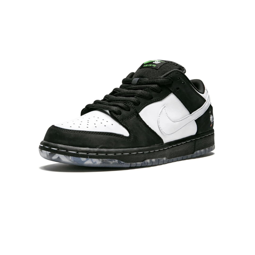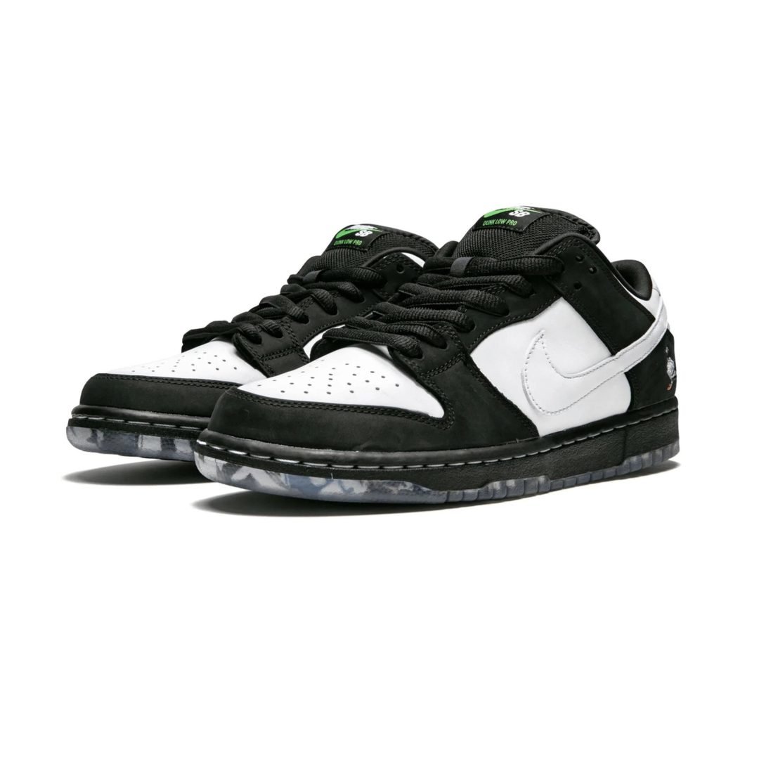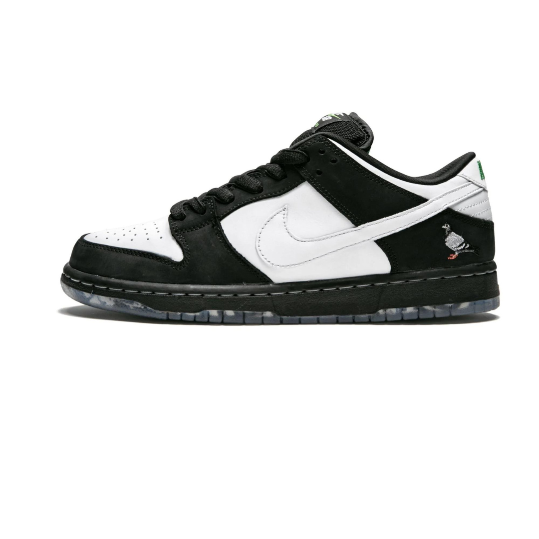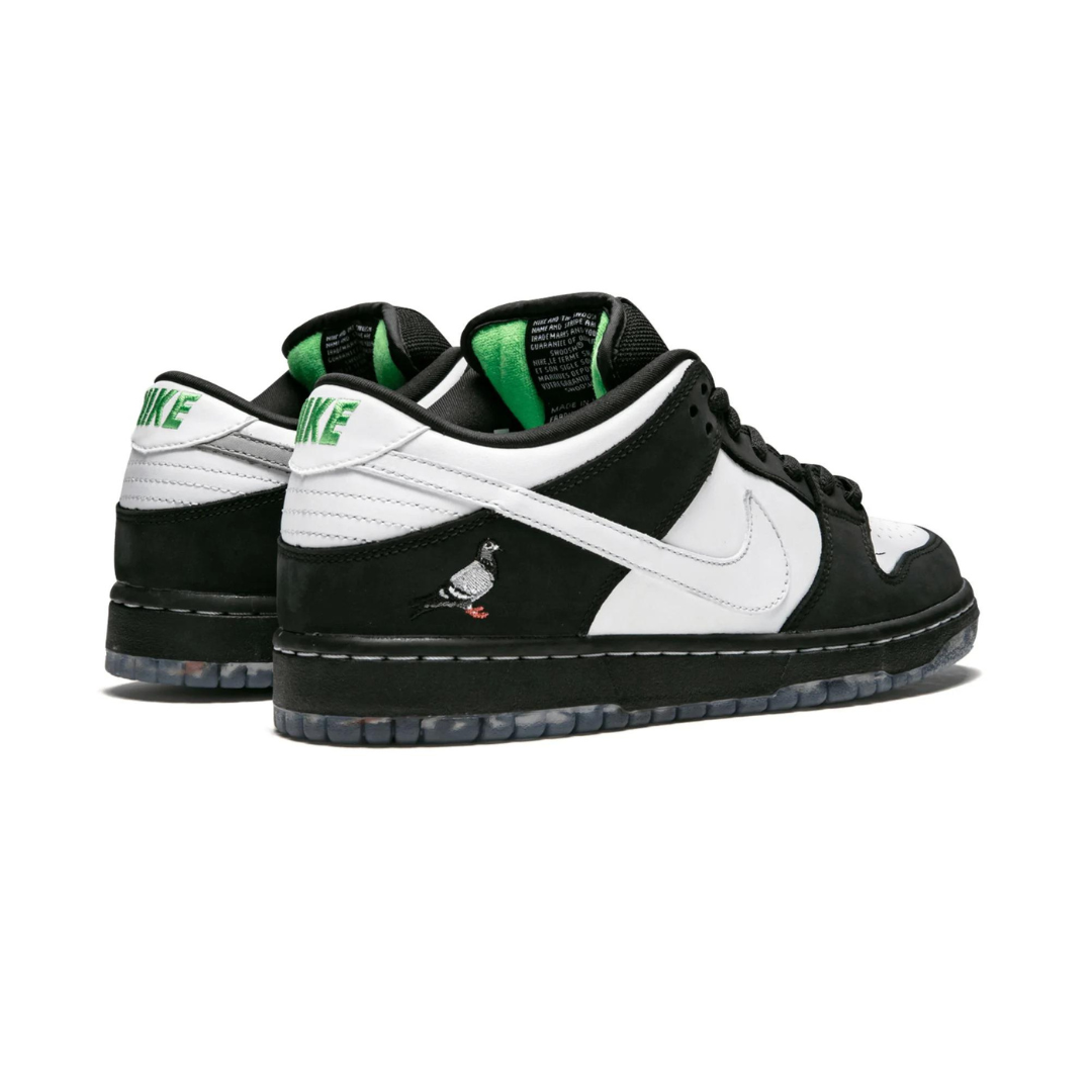 The Staple x Nk SB Dnk Low “Panda Pigeon” is the third chapter of the legendary “Pigeon” Dnk saga. The black and white colorway by Jeff Staple was originally a sample that Staple revealed on social media around the time of the release of the “Black Pigeon” colorway in 2018. When collectors caught a glimpse of it, they requested that it also be produced, so Staple and Nk SB obliged by bringing it to life with an official release. Inspired by the concept of combining a panda and a pigeon, the upper sports a black and white leather upper with bright lime accents while a pigeon is embroidered on the heel. A translucent rubber outsole reveals a collage of the New York Post front page from the day after the infamous release of the original “Pigeon” Dnk in 2005 that proclaimed a “Sneaker Riot.” A bamboo print on the insole completes the design.