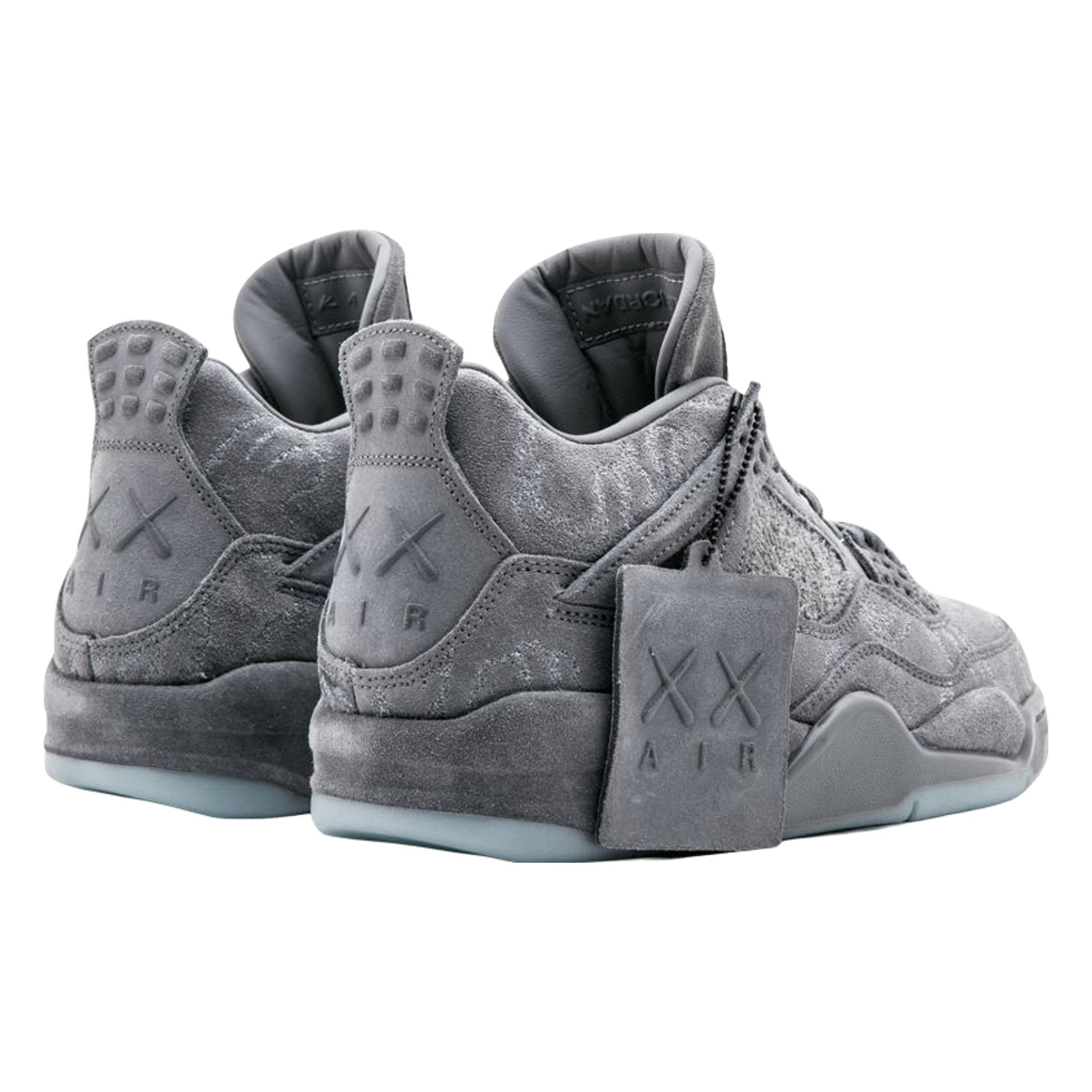 Famed artist KAWS has been rather reclusive since discontinuing his streetwear brand OriginalFake, only showing face for the occasional high art project or worthwhile collaboration. Jordn Brand commission him for the latter; his canvas: the Ar Jordn 4. The result, magnificent. The KAWS x Ar Jordn 4 features a buttery premium suede upper in smooth and heathered textures, all drenched in a tonal grey colorway. KAWS hand graphics are etched into the upper as well, along with the matching hang tag. The midsole and upper “Wngs” are also wrapped in suede. Finally, a glow in the dark sole completes the look.