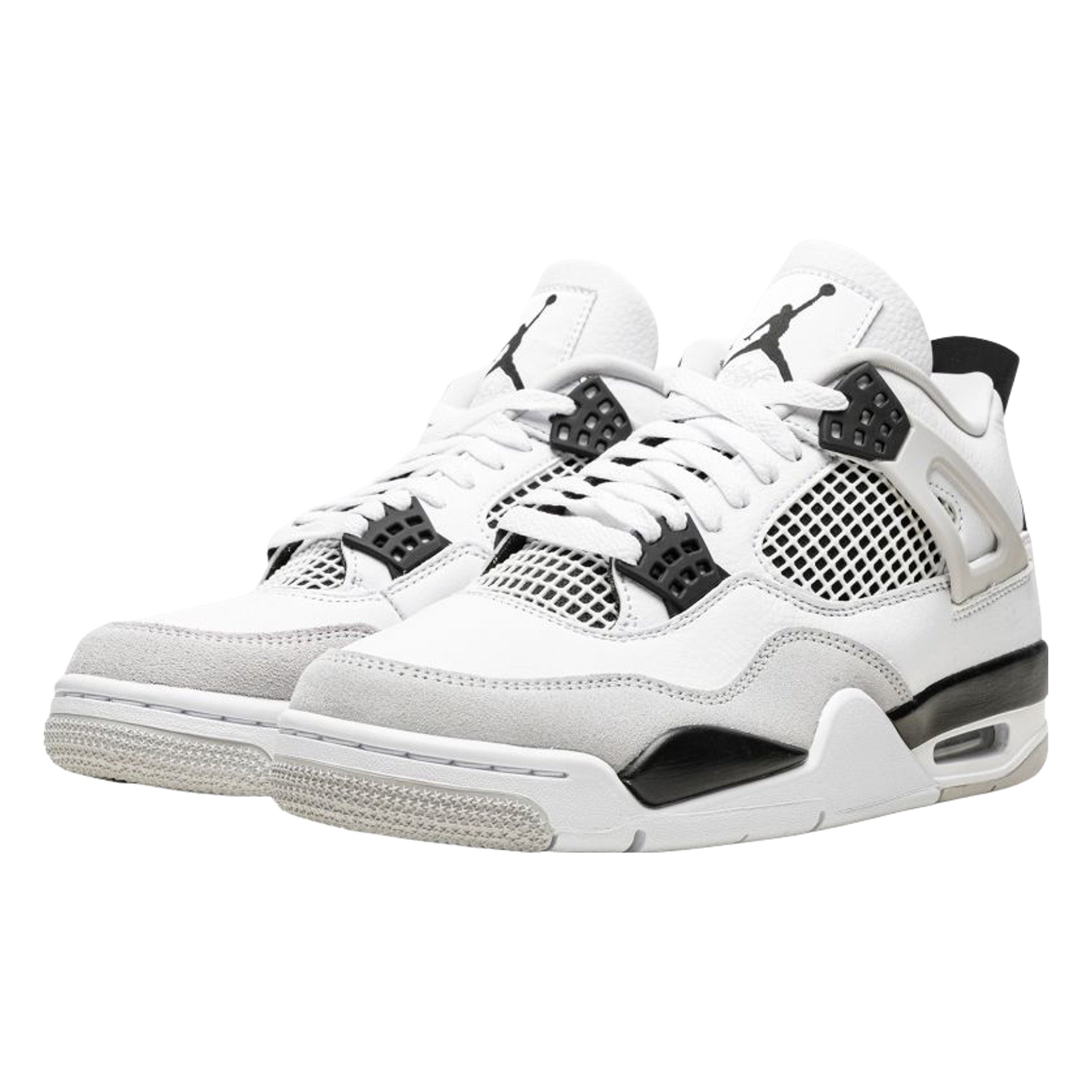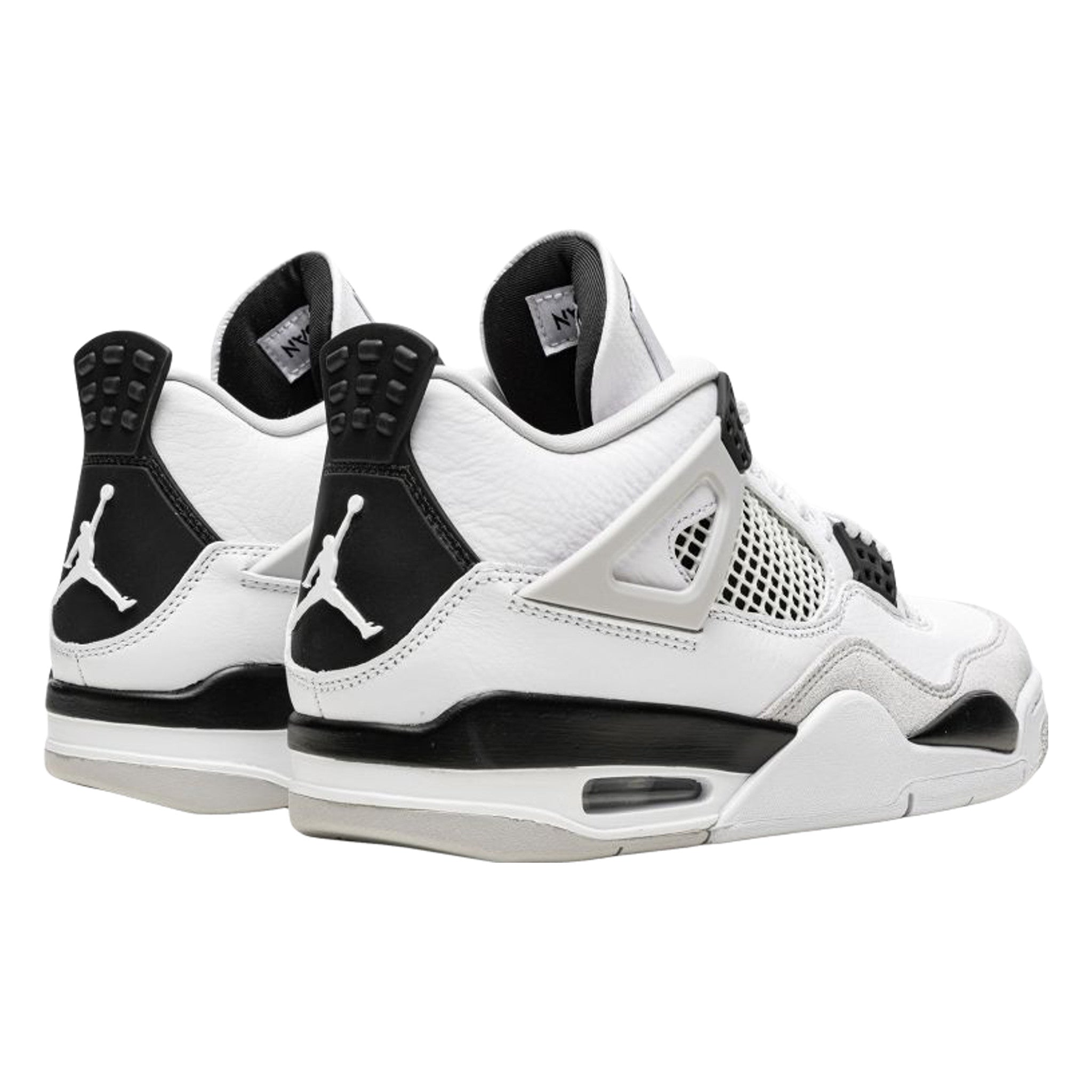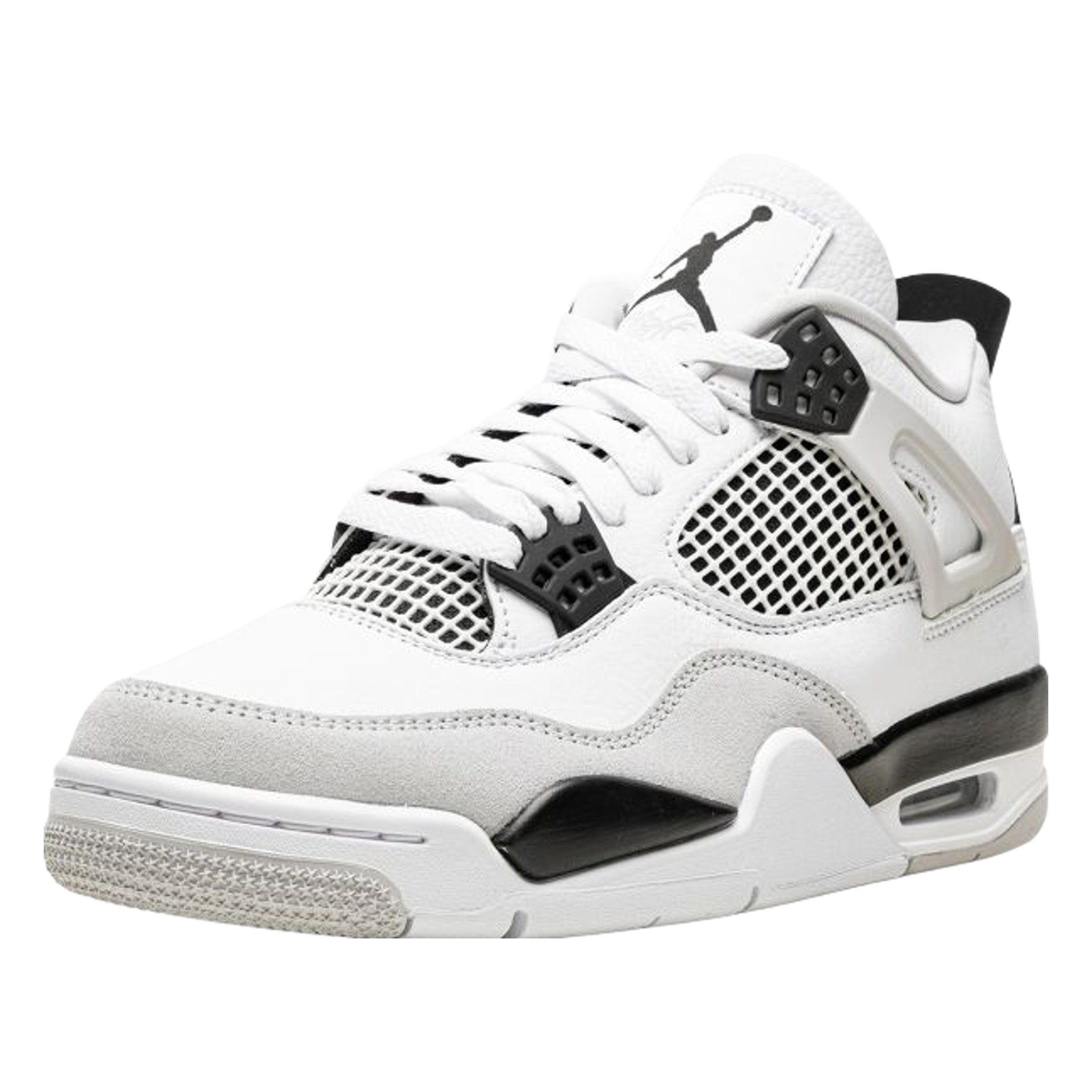 The Ar Jordn 4 “Military Black” is a neutral colorway of the retro basketball shoe designed in the same color block as the model’s popular, original “Military Blue” style from 1989. The Jordn 4 “Black Military” is undoubtedly inspired by the Jordn 4 “Military” from 1989 as it features the same color design as the throwback colorway, just with black accents instead of blue. The shoe’s upper is constructed with a white leather base with grey suede on the forefoot overlay. The TPU eyelets and heel counter are accented in black. As are the underlays beneath the netting on the sides and on the tongue. Classic logo detailing can be found on the heel and on the tongue tag.