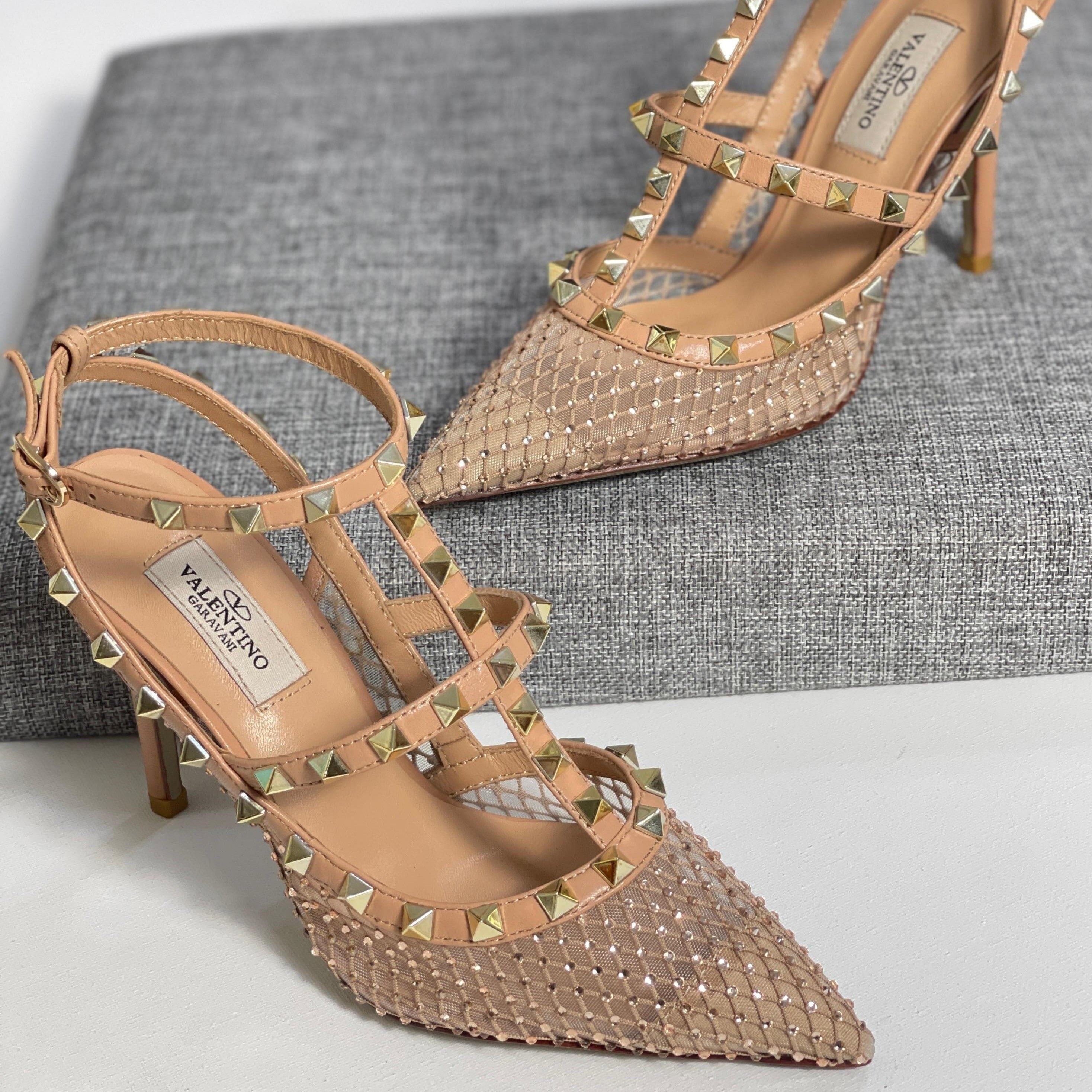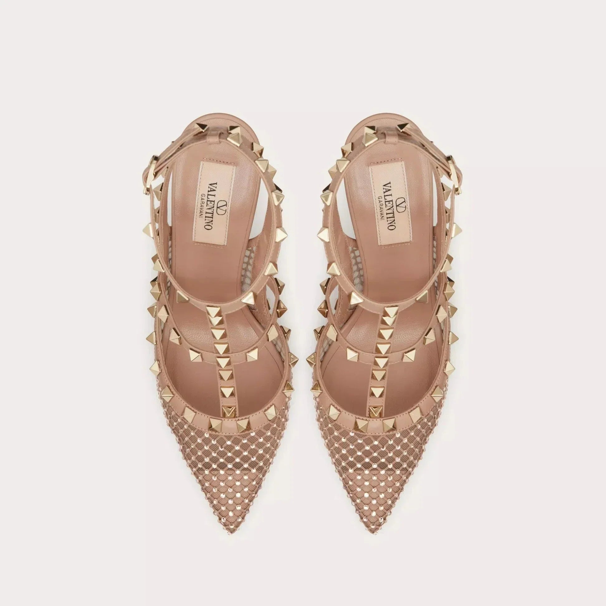 Valentino Garavani Rockstud mesh pumps with straps and crystal appliqué
