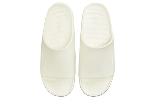 The Nke Clm Slde "Sail" is a tan colorway of the stylish slip-on sandal. The Calm Slide debuted in 2023 and is a versatile footwear option for casual wear. As far as its design, the Calm Slide is constructed from a cream-colored one-piece foam mold. The midfoot strap that supports the sandal features a debossed on the side. Underneath, a thick foam cushioning footbed provides a comfortable ride.