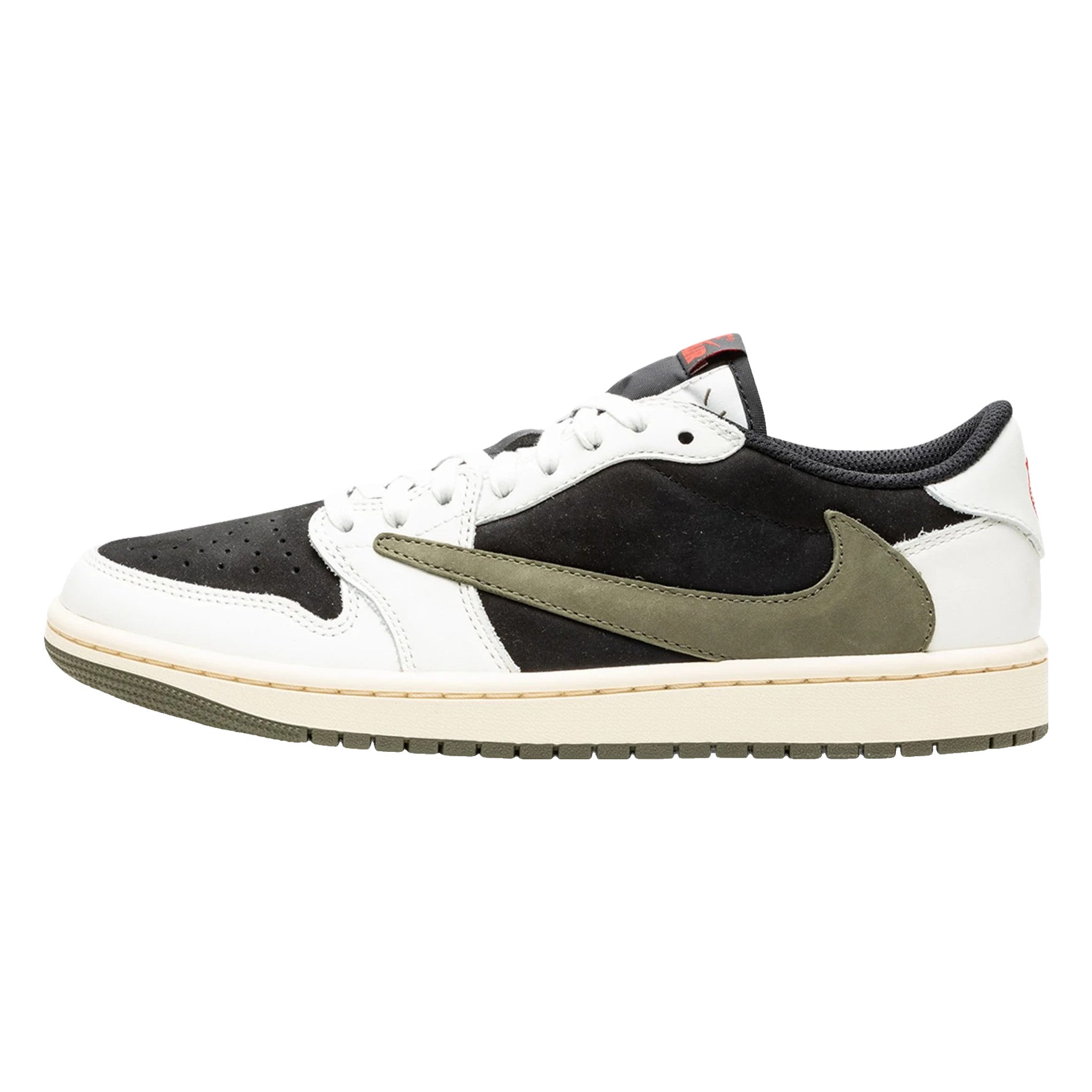 The Trvis Sctt x Women’s Ar Jrdn 1 Low “Olive" is a popular collaboration by the hip-hop star on the women’s version of the classic sneaker. Trvis Sctt’s Women’s Jrdn 1 Low “Olive” succeeds the Houston native’s other desirable Ar Jrdn 1 collaborations that date back to 2019. The “Olive” is reminiscent of “La Flame’s” Jrdn 1 Low “Reverse Mocha” release, in that it features a similar neutral-colored base with contrasting white leather overlays. Here, on the “Olive,” the shoe features a black base with white leather overlays. An oversized, inverted Olive leather appears on either side. Classic red “Nk” and branding is found on the tongue and Scott’s signature smiley face is embroidered on the left heel while a “Wings” logo is embroidered on the right heel.