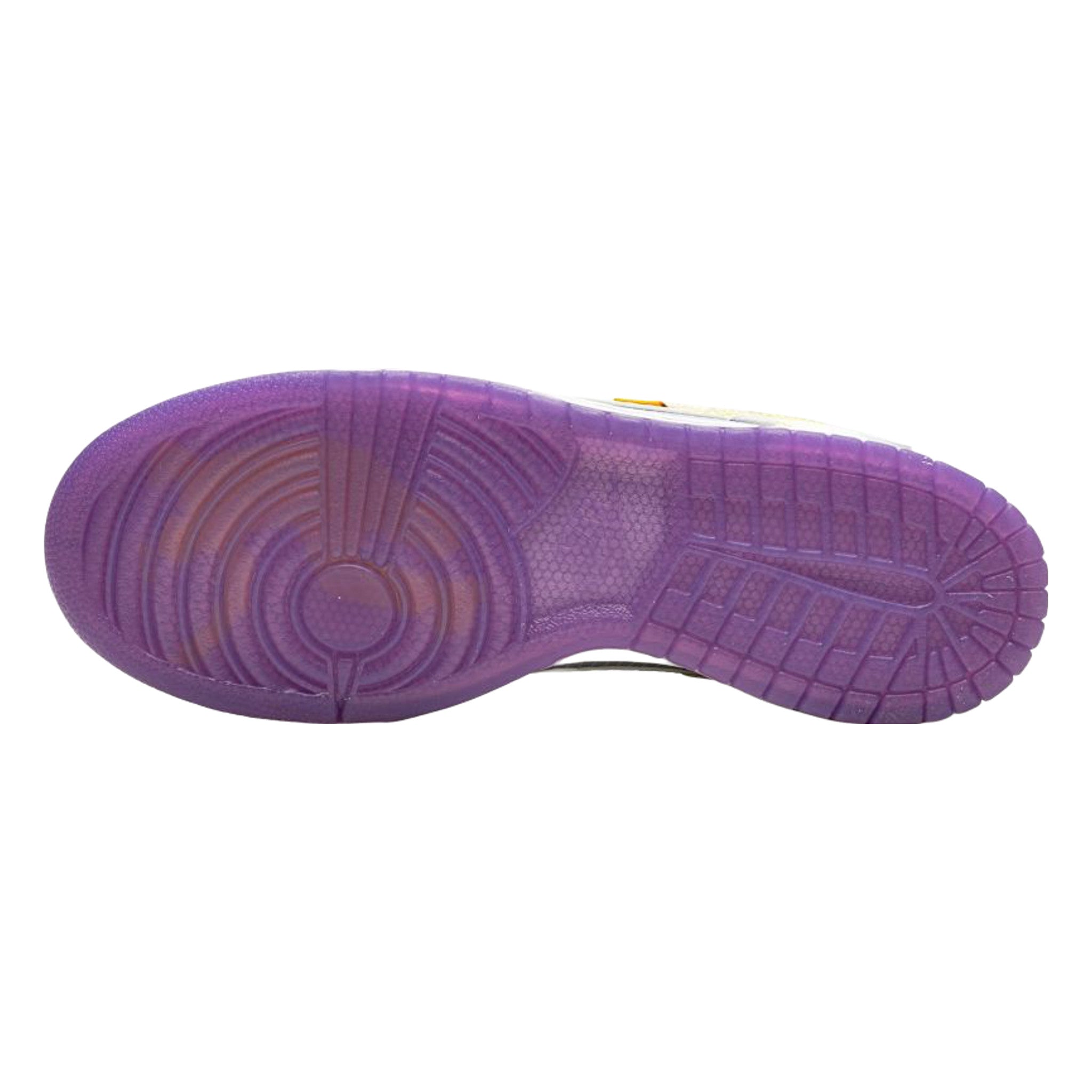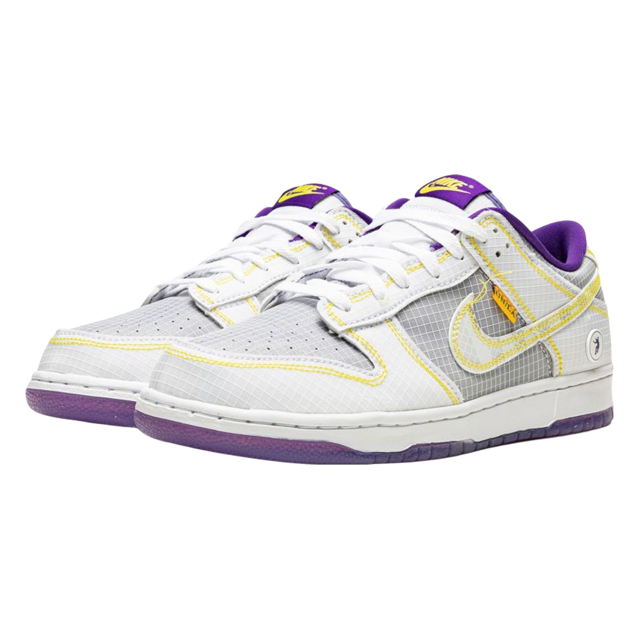The Union x Nke Dnk Low “Passport Pack - Court Purple” is a collaboration by the Los Angeles based clothing boutique on a colorway of the classic sneaker with unique details. The “Passport Pack” collaboration is based on the concept of hunting down rare, exclusive Dnks in the early 2000s, specifically those from Nke’s overseas “Concept Japan” collection. On the “Court Purple,” Union shows love to the Los Angeles Lakers by employing the basketball team’s purple and gold team colors on the shoe’s design. A ripstop textile upper gives the shoe a distinct appearance. The overlays are designed in white with yellow contrast stitching, while the base is constructed in a grey ripstop material. Unfinished stitching appears along each panel and on the clear giving the shoe a raw, “do-it-yourself” aesthetic. A yellow “UN/LA” branding tag is found on the collar and Union’s logo appears on the lateral side of the heel.