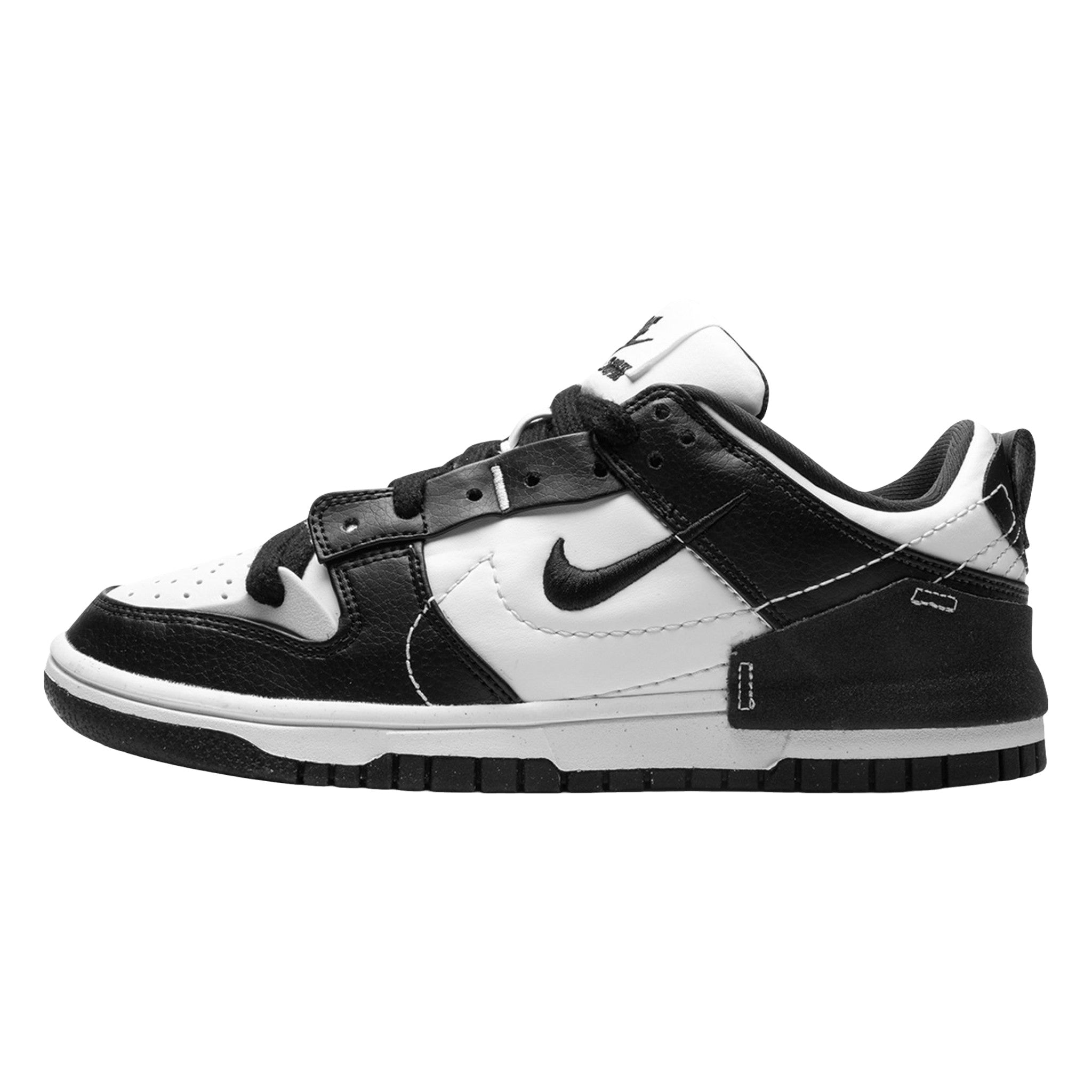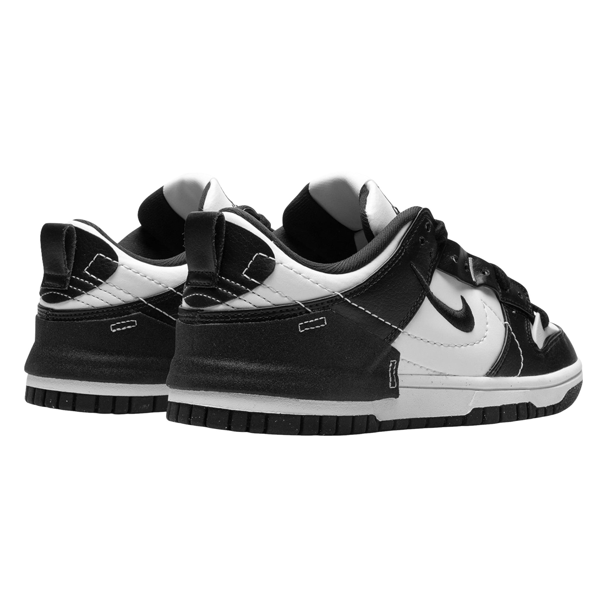 The Women’s Nke Dnk Low Disrupt 2 “Panda” is a women’s-exclusive colorway of the remodeled version of the classic sneaker. The Women’s Dnk Low Disrupt 2 recalibrates the Dnk’s original design, and represents the second edition of the contemporary Dnk Disrupt model. The shoe’s appearance is moderately different from the original Dnk, but no less wearable, especially in the popular “Pnda” colorway. The upper features a white leather base with contrasting black leather overlays. A layered panel on the eyelets gives the shoe a modern vibe that nods to the “double” aesthetic found on Sacai and Nke’s footwear collaborations. A small black embroidered is found next to the outline on the sides. An oversized black leather panel on the heel continues the shoe’s progressive-looking design.