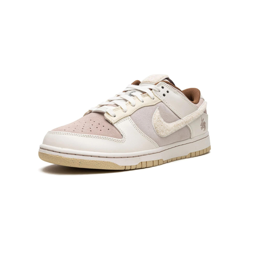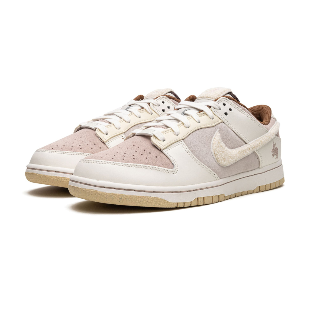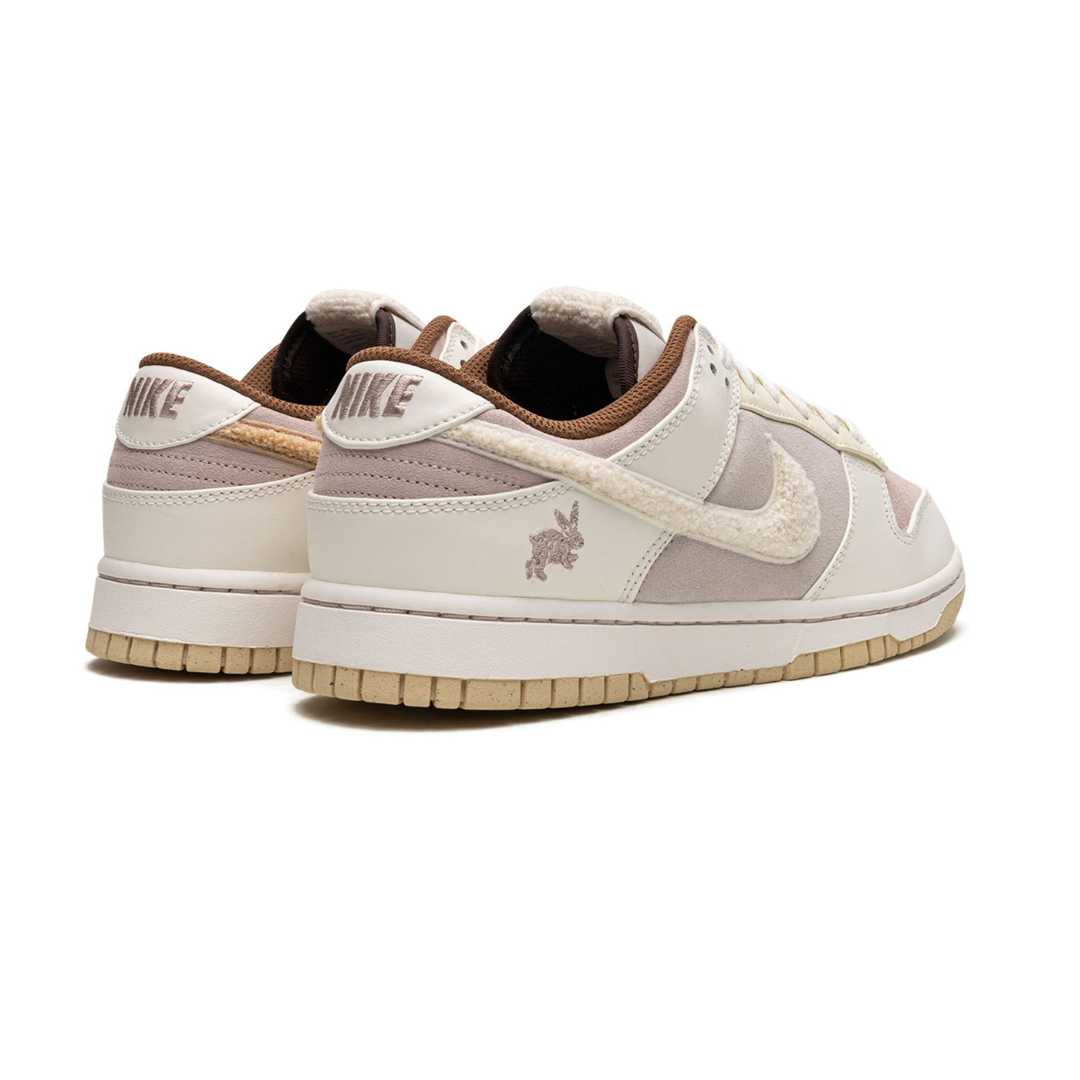 Nke's Dnk Low Retro PRM sneakers arrive in an understated coconut milk-white and stone-brown colourway. Its retro silhouette is elevated with the brand's iconic logo adorning the side walls in a fuzzy terry-textured rendition.